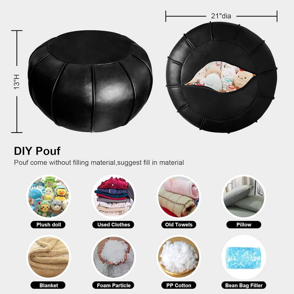Modern Black Faux Leather Pouf Ottoman Moroccan Footstool Floor Footrest Cushion Unstuffed Bean Bag Storage Solution for Sofa