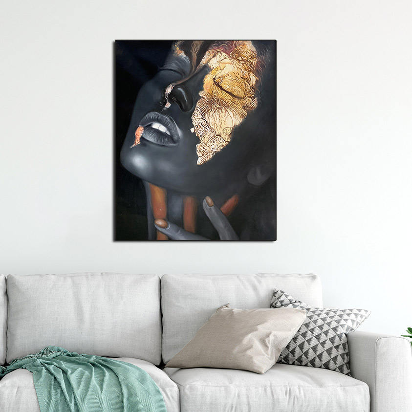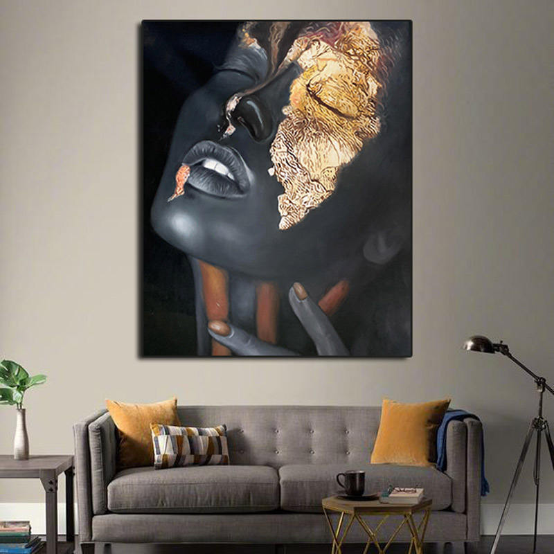 Modern Black Gold African Women Painting Canvas Wall Art Sexy Girl Oil Painting