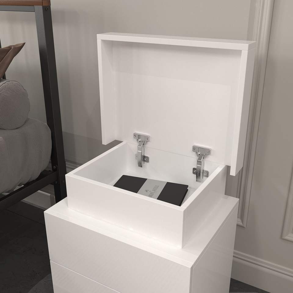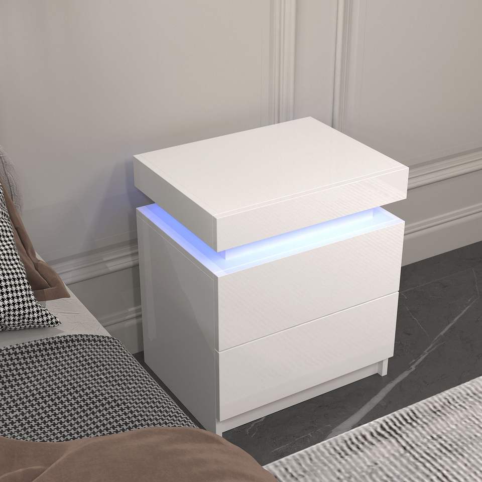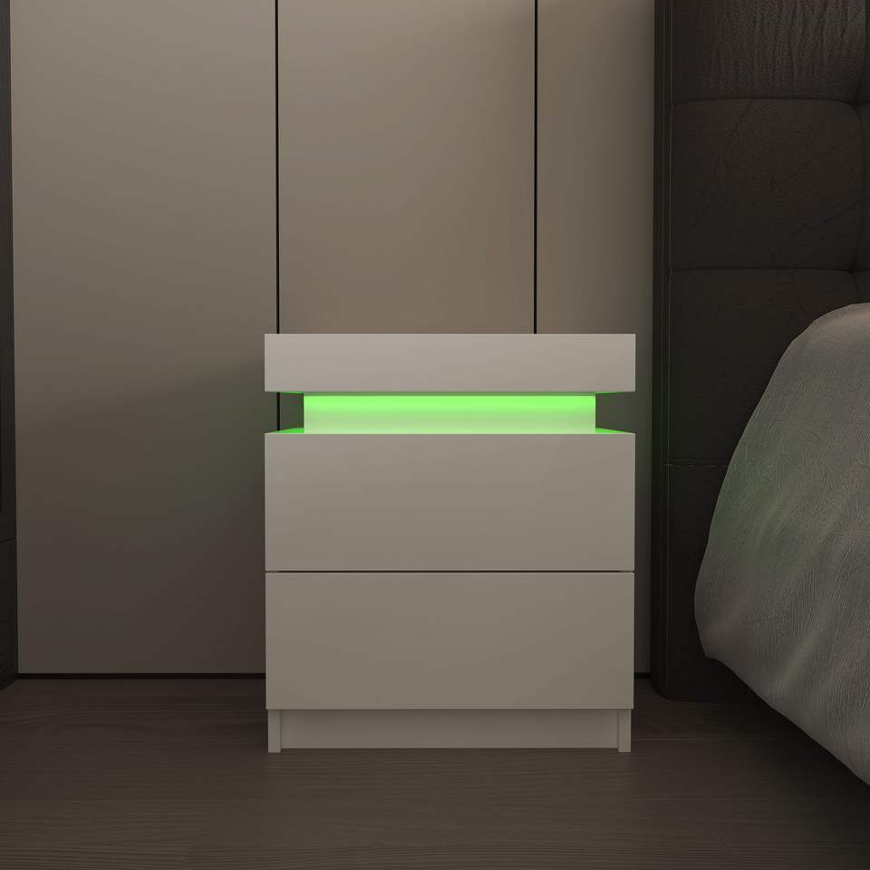 Comodino Moderno Nero con LED e Cassetti Lucidi, Tavolino da Notte con 2 Luci LED per Camera da Letto