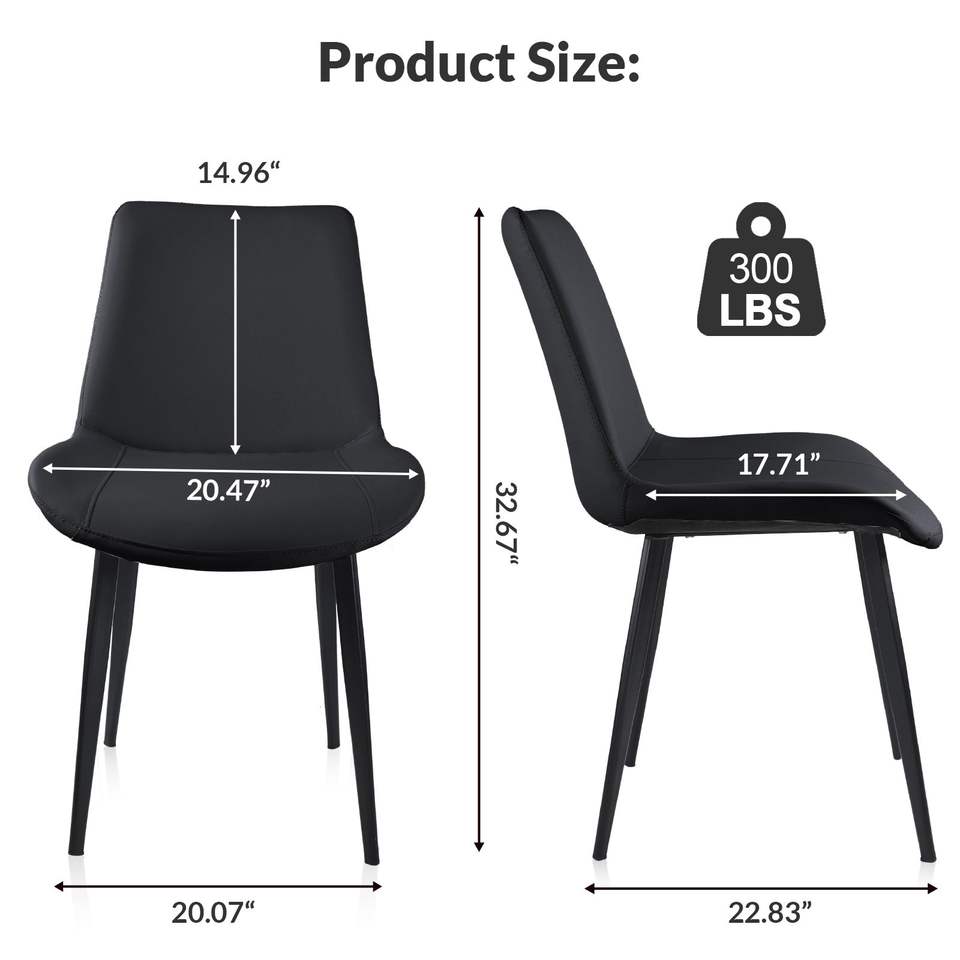 Set di Sedie da Pranzo Moderne in Pelle PU Nera con Gambe in Metallo per Cucina, Ristorante, Soggiorno e Sala Riunioni