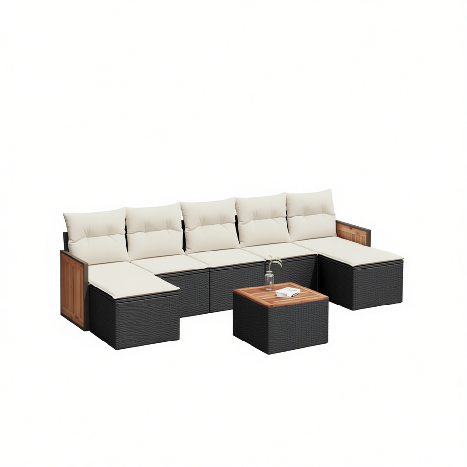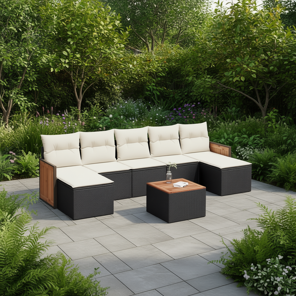 Set Divano da Giardino Moderno in Rattan PE Nero, Arredamento da Esterno con Cuscini in Schiuma ad Alta Densità, Design Elegante e Durevole per Uso in Patio