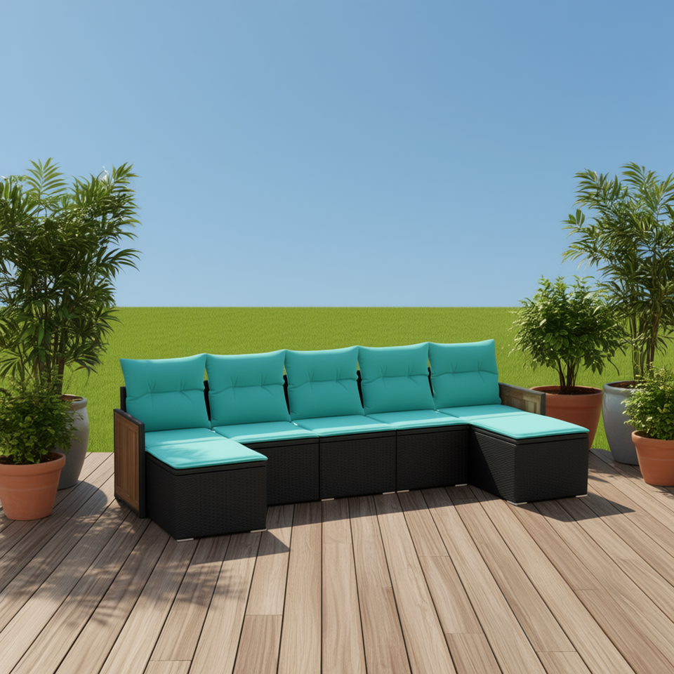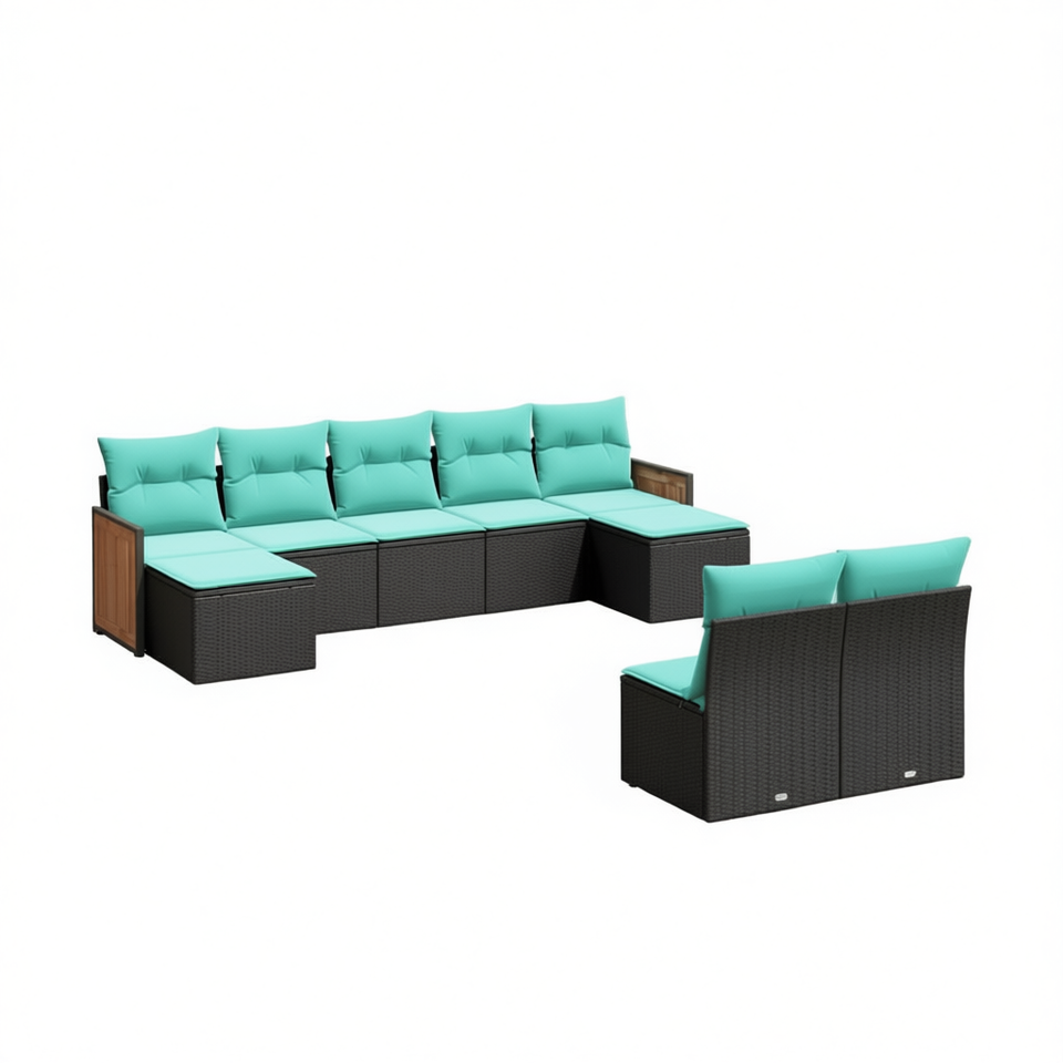 Set Divano da Esterno Moderno in Polyrattan Nero 9 Pezzi con Cuscini Design Contemporaneo