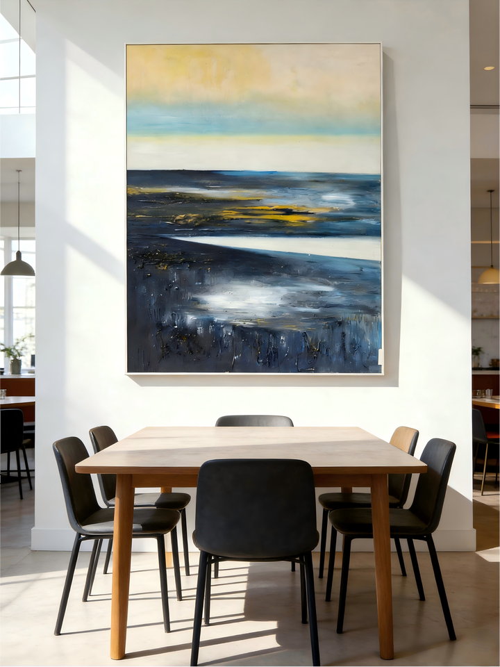 Opera d'Arte Moderna Impressionista Blu, Decorazione Murale per Casa, Dipinto a Olio su Tela, Paesaggi Marini