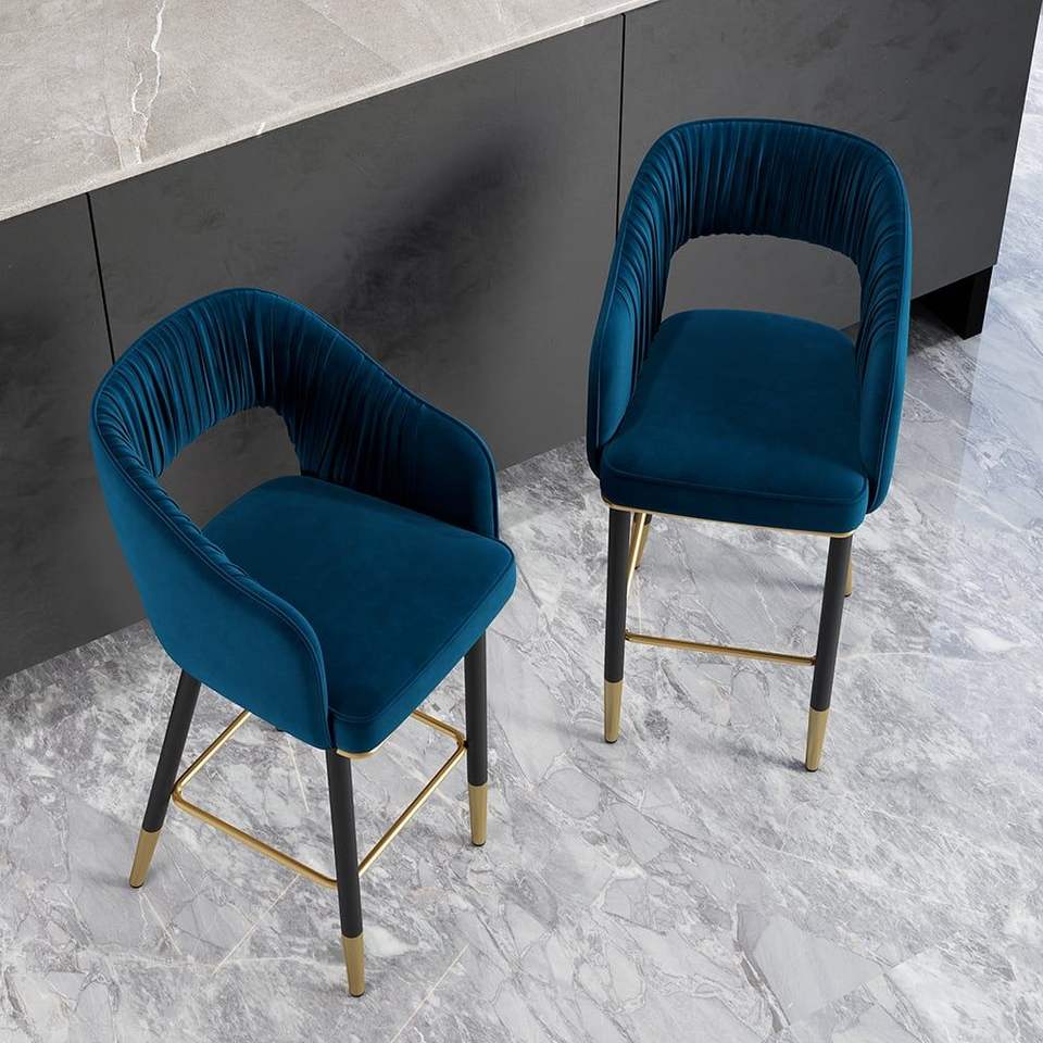 Sgabelli da Bar imbottiti in velluto blu moderno