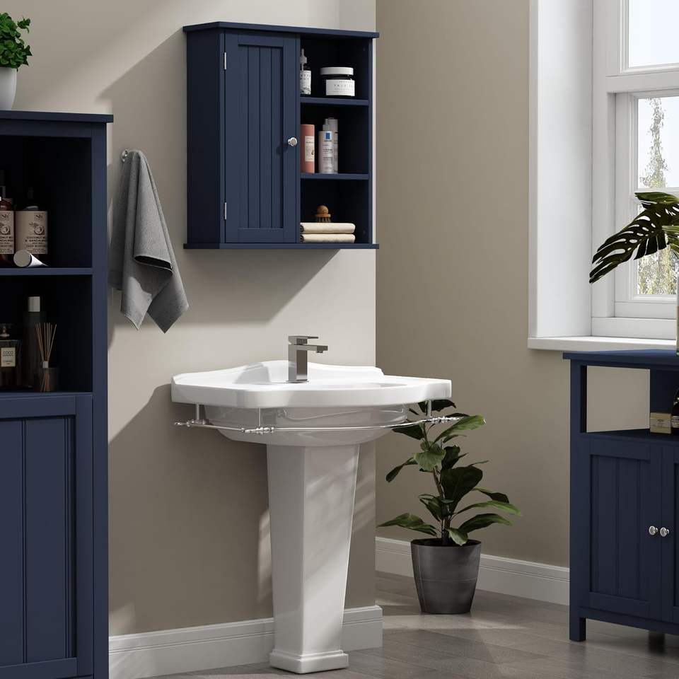 Armadio di stoccaggio a parete blu moderno con mensole per mobili da bagno offerta di sconto disponibile