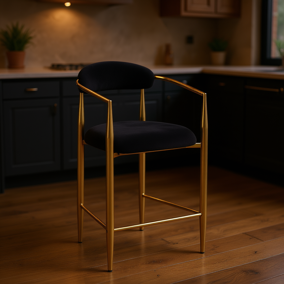 Sgabello da Bar Moderno Imbottito con Struttura in Metallo, Seduta in Bouclé Nero, Sedia per Cucina, Pub e Sala da Pranzo