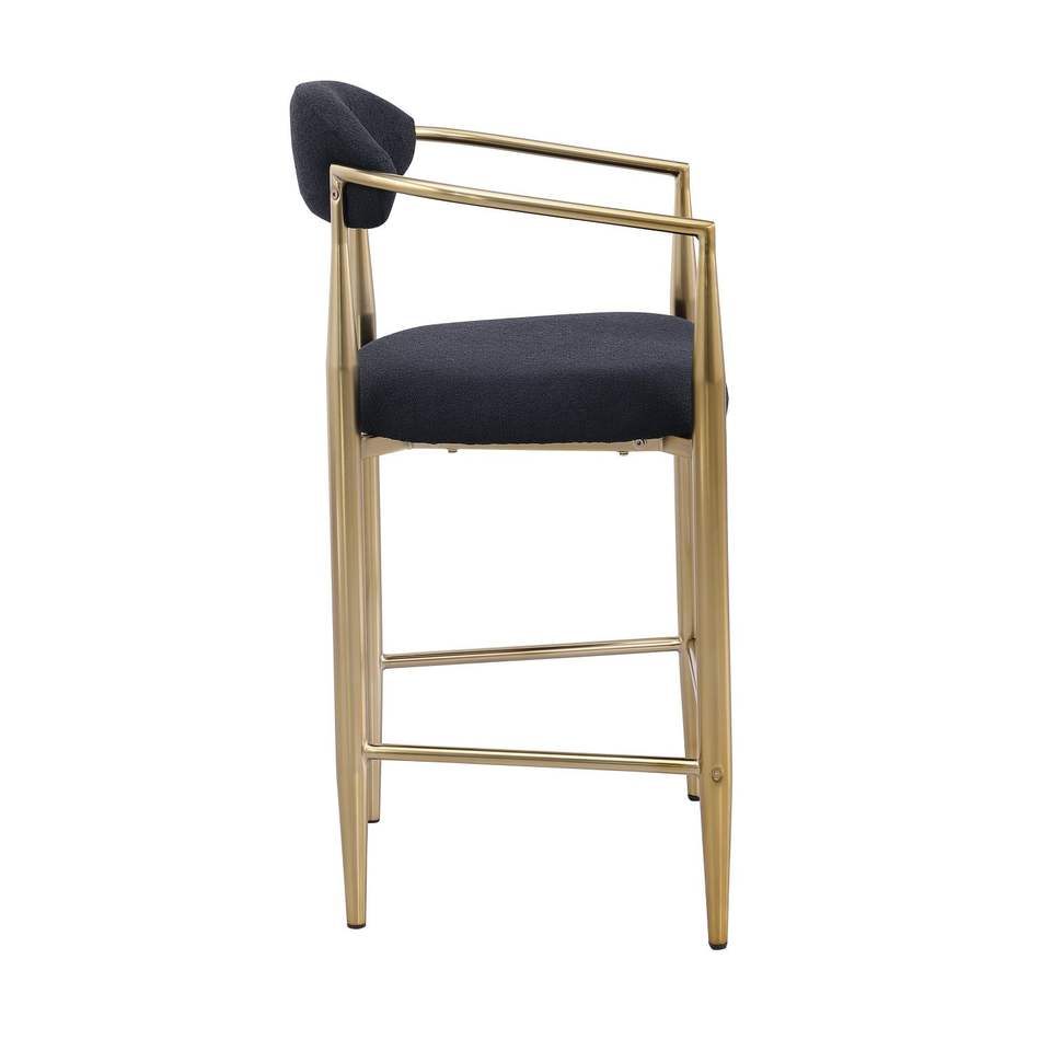 Modern Boucle Bar Stools Set 2 Upholstered Bar Height Chairs with Vintage Metal Frame/Back/Arms for Kitchen Pub/Dining Room