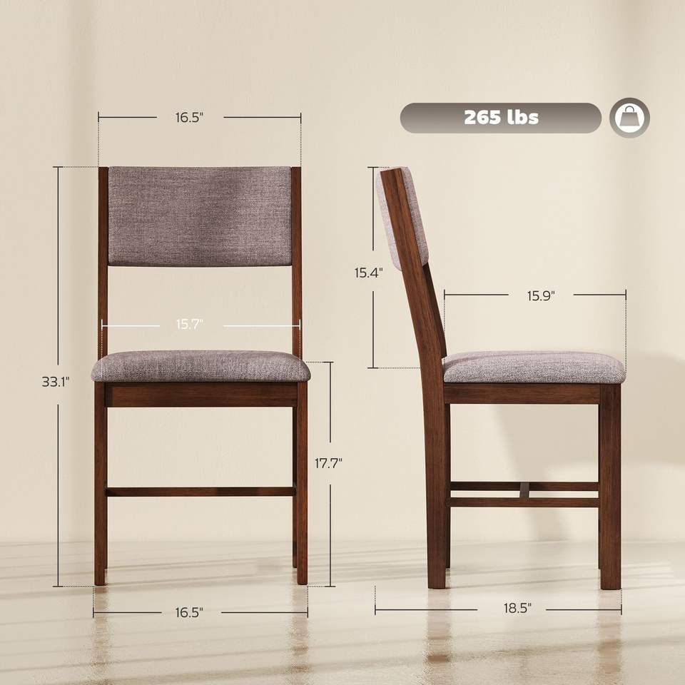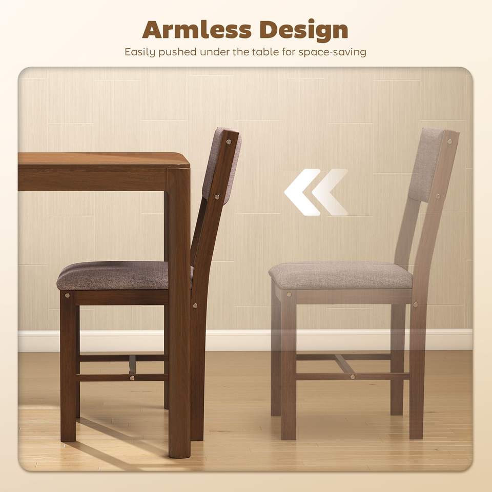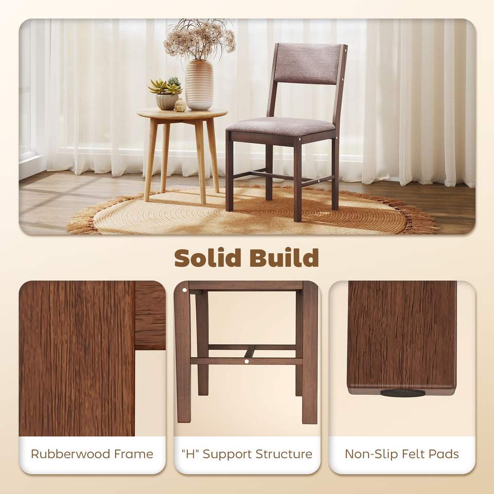 Set di 4 Sedie da Pranzo Moderne in Tessuto di Lino Marrone con Gambe in Legno di Gomma per Sala da Pranzo e Soggiorno