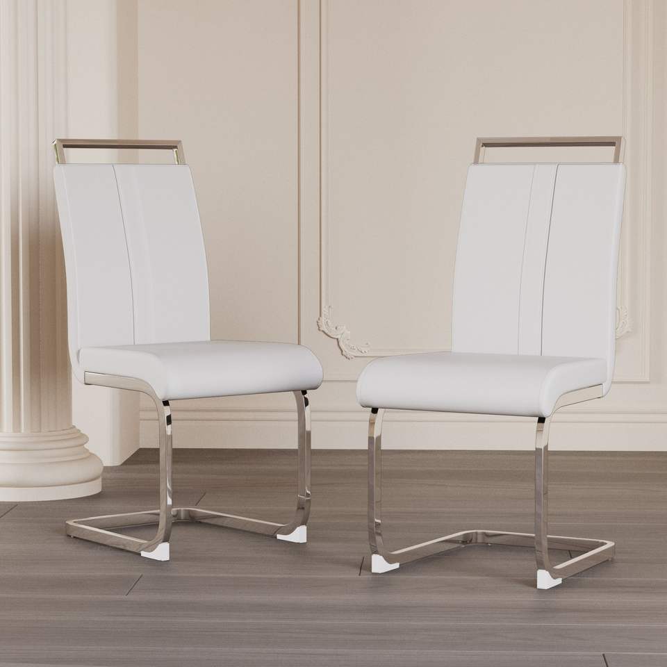 Set di 2 Sedie da Pranzo Moderne con Gambe in Metallo Placcato a Forma di C, Schienale Alto in Ecopelle PU, Imbottite per Sala da Pranzo