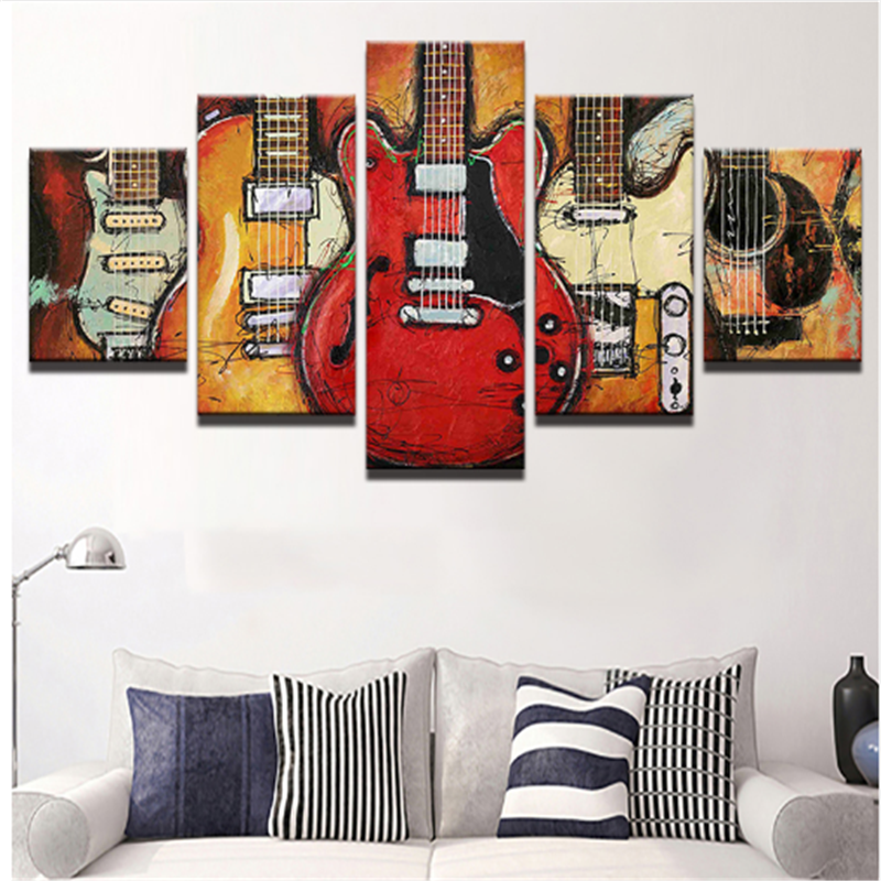 Modern Canvas Painting HD Printed Wall Art Frame Modular Pictures Living Room Decor 5 Pieces Abstract Guitar Music Poster