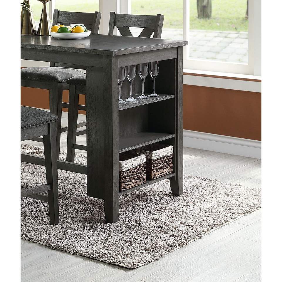 Tavolo da Colazione Moderno e Casual in Legno, Altezza Bancone, con Ripiani Portaoggetti, Finitura Grigia, Set da 1 Pezzo per Sala da Pranzo