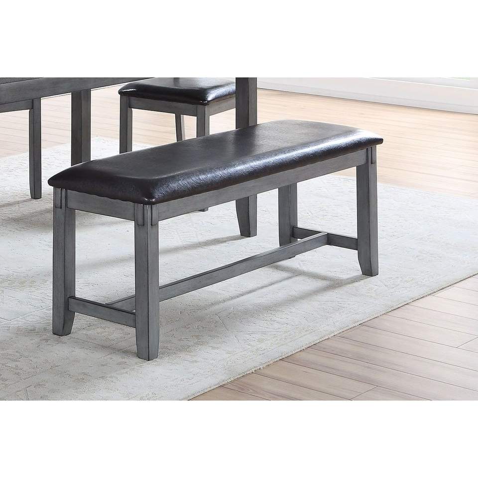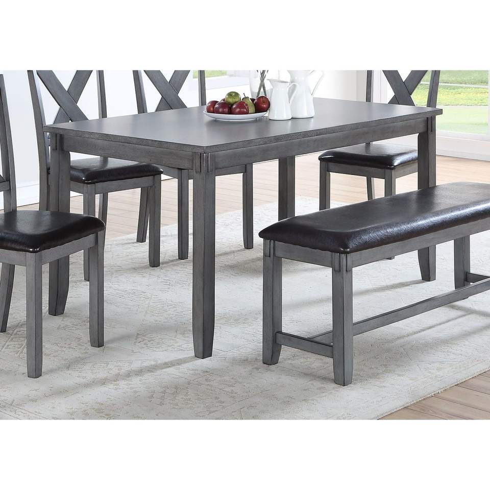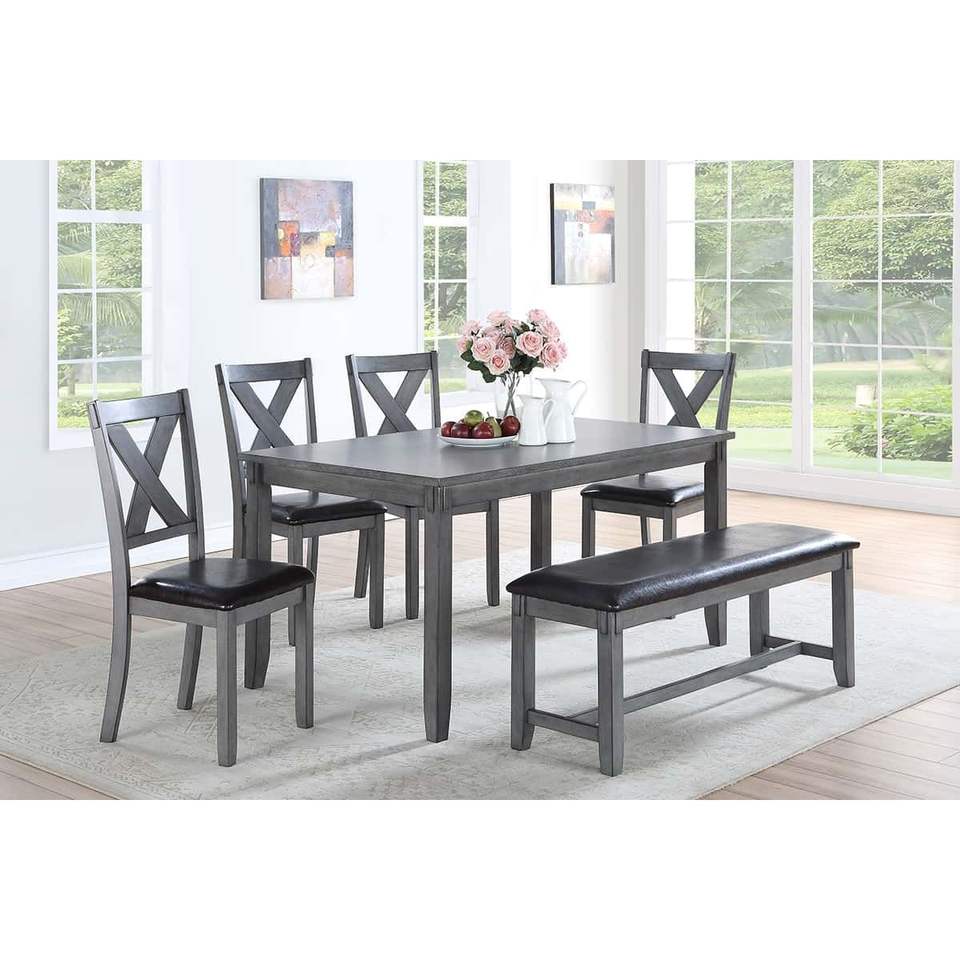 Set da Pranzo Moderno e Casual 6 Pezzi: 4 Sedie Laterali Grigie, Panca e Tavolo da Pranzo in Legno di Gomma e Impiallacciatura di Betulla