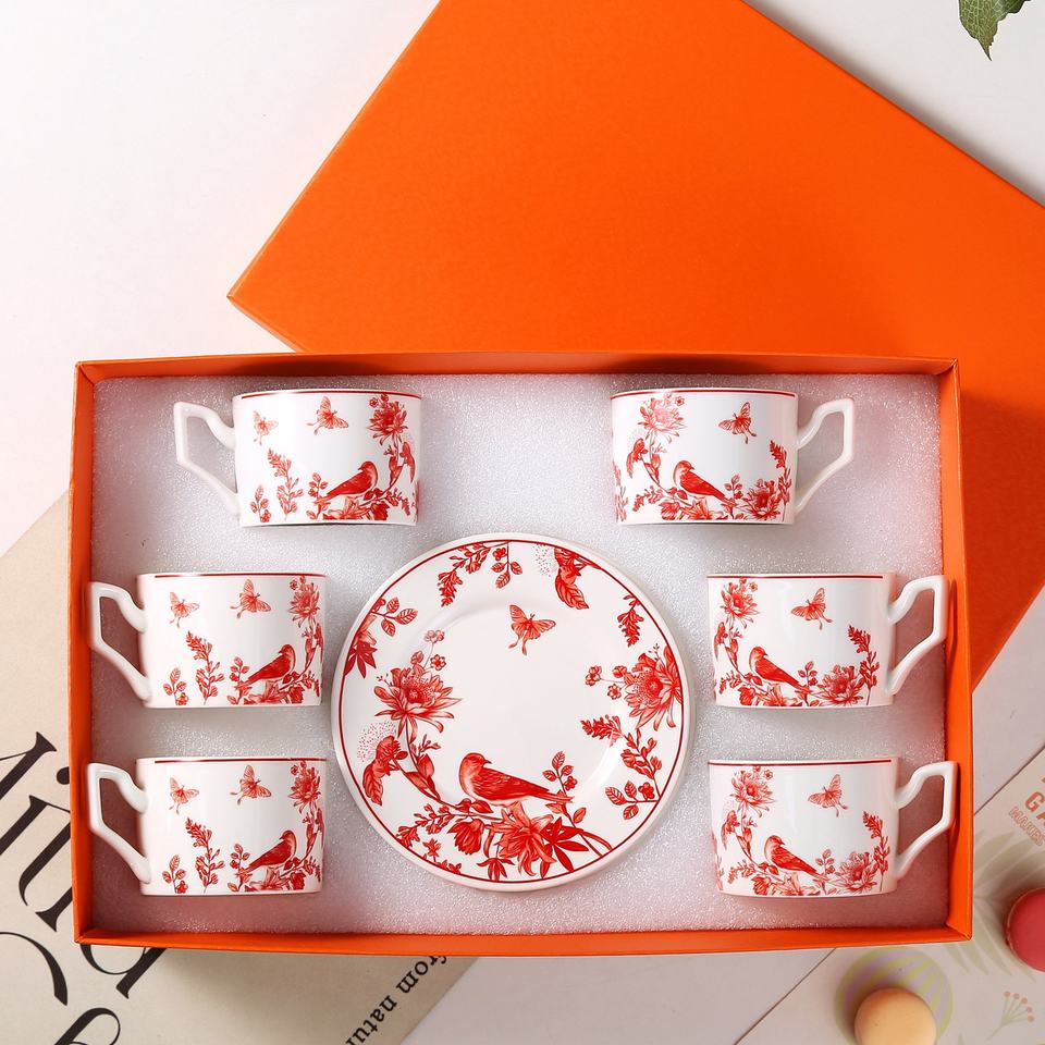 Set Moderno di Tazza e Piattino in Ceramica con Design Floreale Raffinato per Tè Pomeridiano Casual, Regalo Romantico di Alta Classe