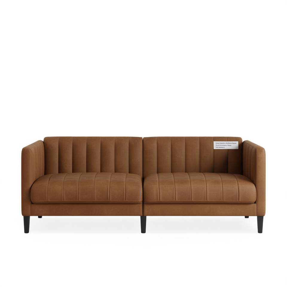 Divano Chesterfield Moderno in Ecopelle Marrone, Due Posti, Imbottito, per Soggiorno, con Schienale Trapuntato e Braccioli Imbottiti