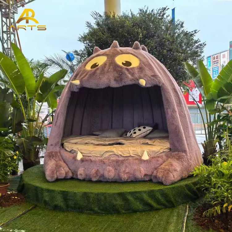 Letti Moderni Imbottiti per Bambini a Tema Mostro King-Size con Struttura in Metallo, Design Unico e Brevettato di Forma Rotonda per Arredamento Camera da Letto