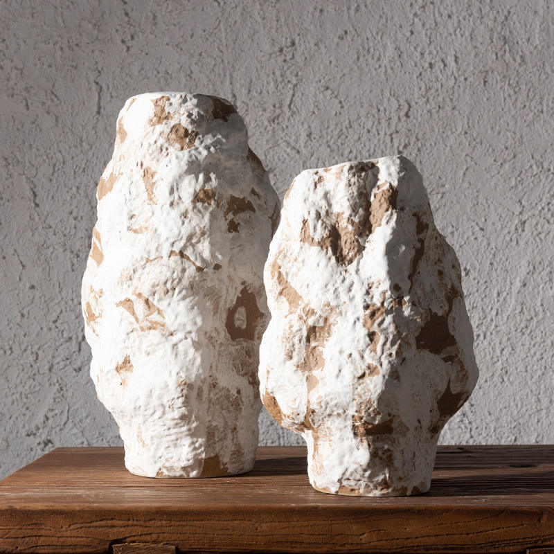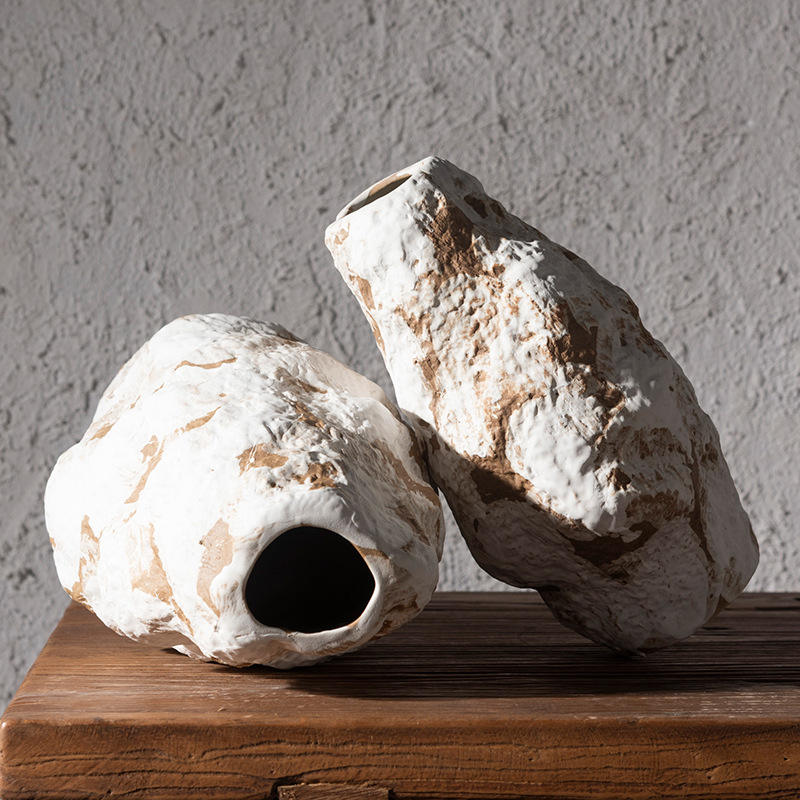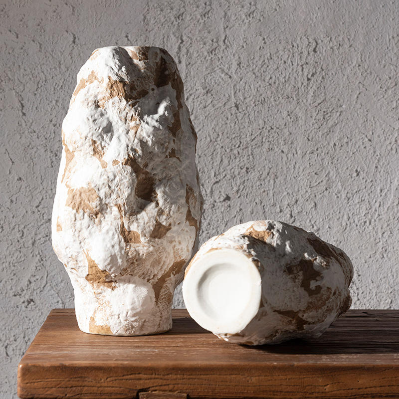 Vaso Cilindrico in Ceramica Fatto a Mano in Stile Cinese Moderno, Design Rustico Effetto Pietra con Smalto Opaco per Arredamento Casa, Stile Orientale