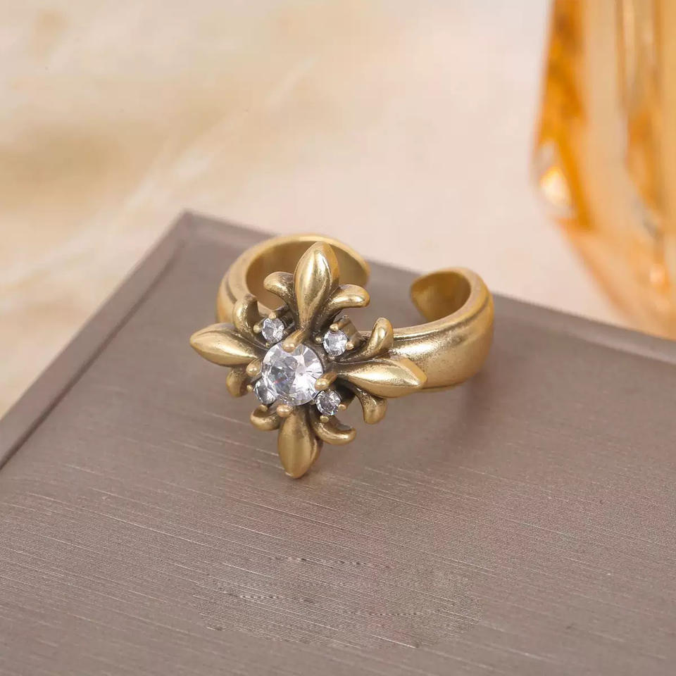 Anelli Moderni Cristiani in Ottone con Croce, Cristalli e Strass, Design Regolabile con Lettera e Saturno, Regalo di Anniversario per Donne