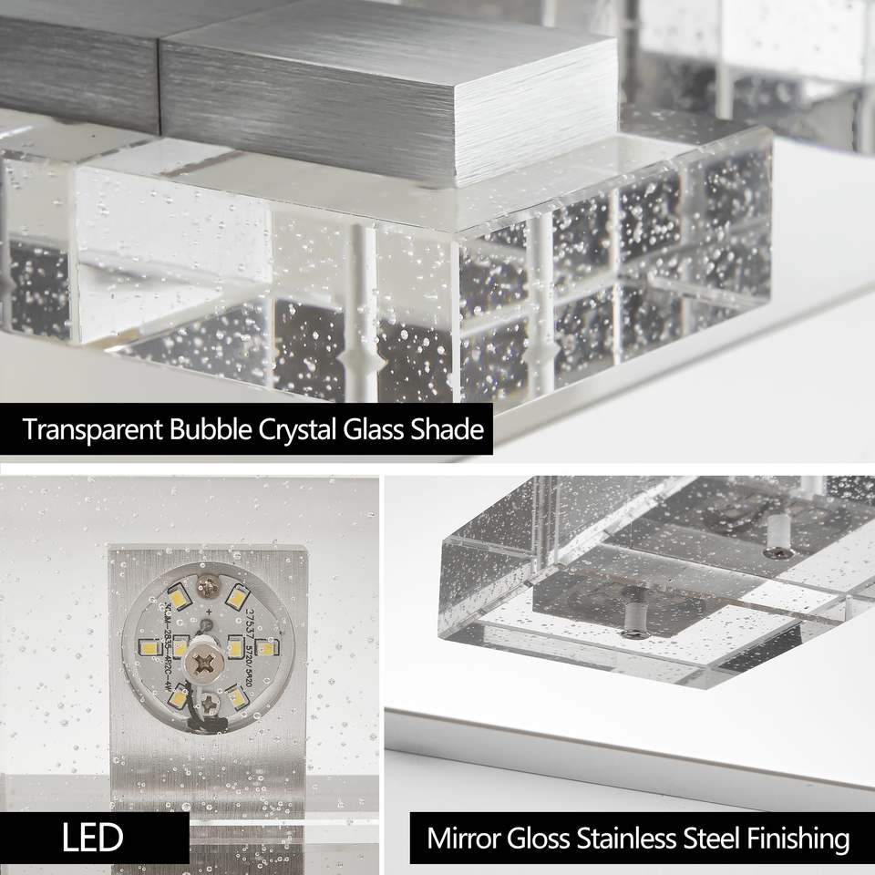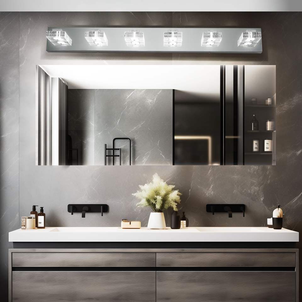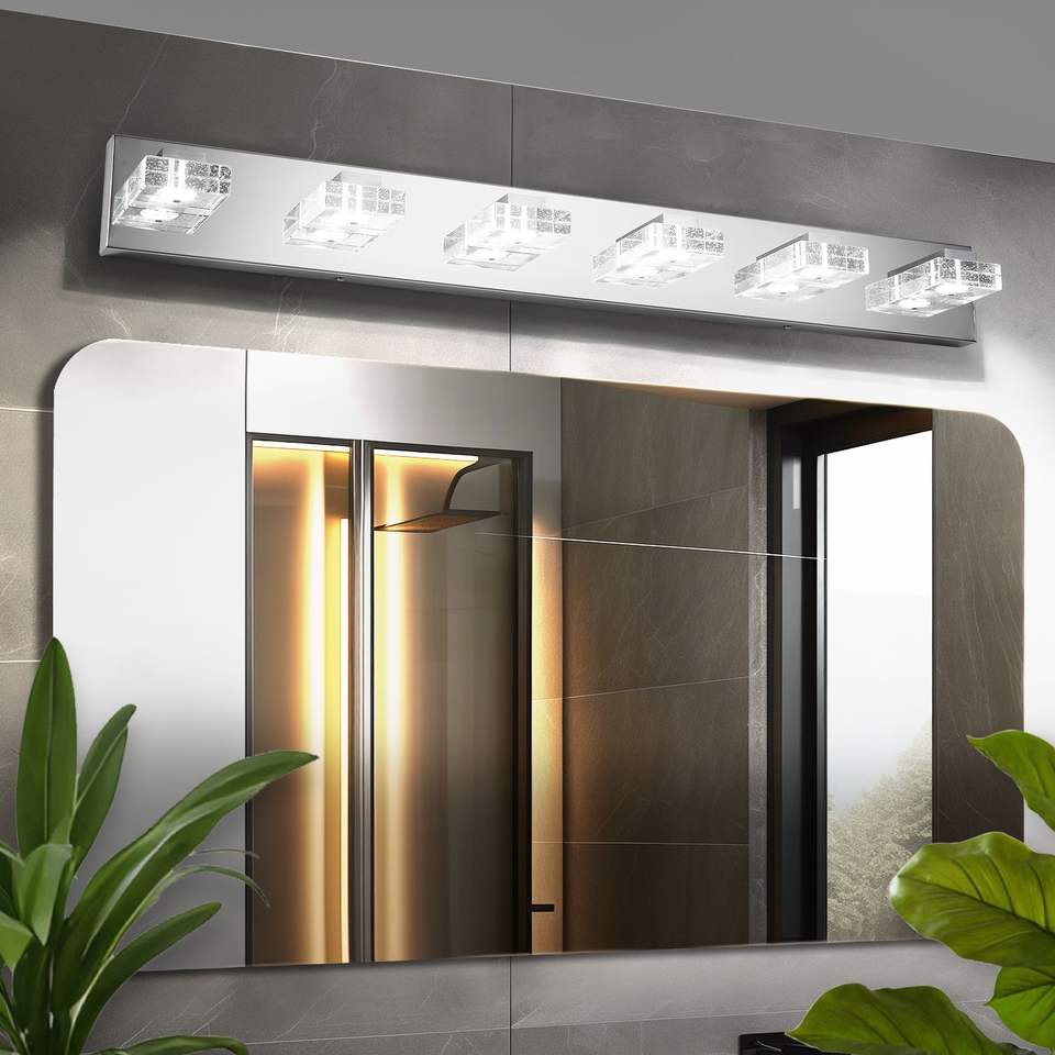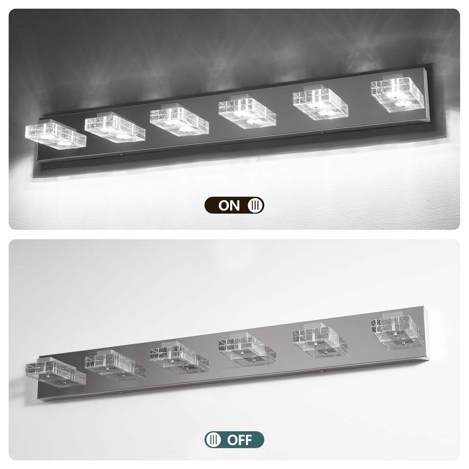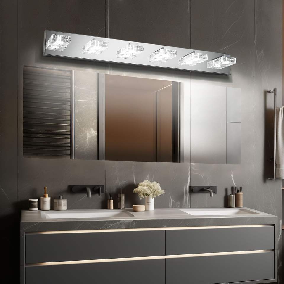 Moderna Lampada da Parete a 6 Luci LED Cromata, 96 cm, con Paralumi Quadrati in Acrilico, per Illuminazione Specchio Bagno