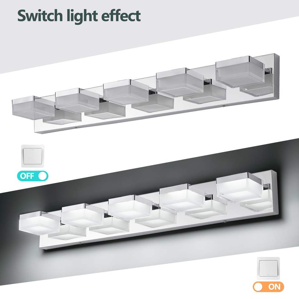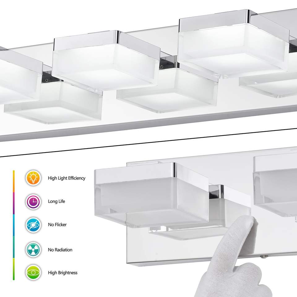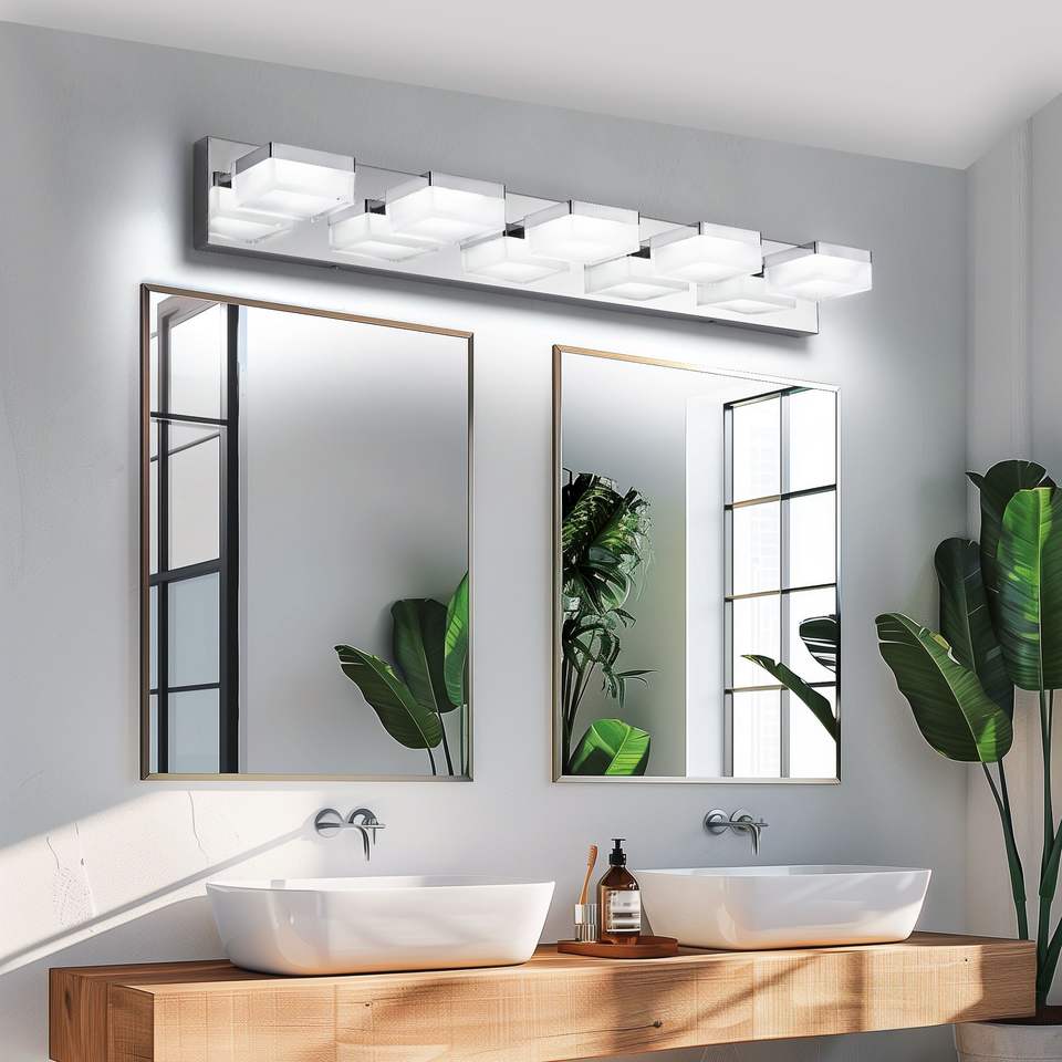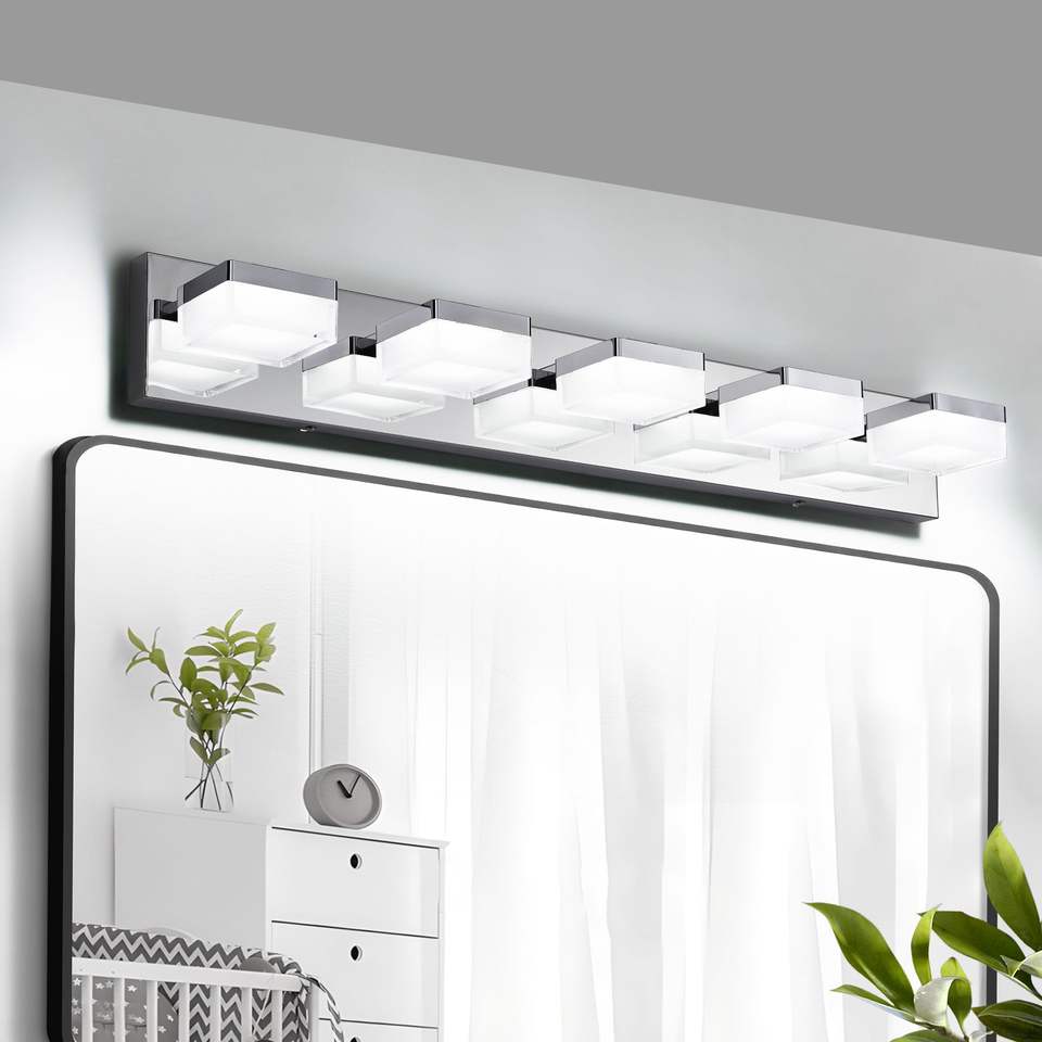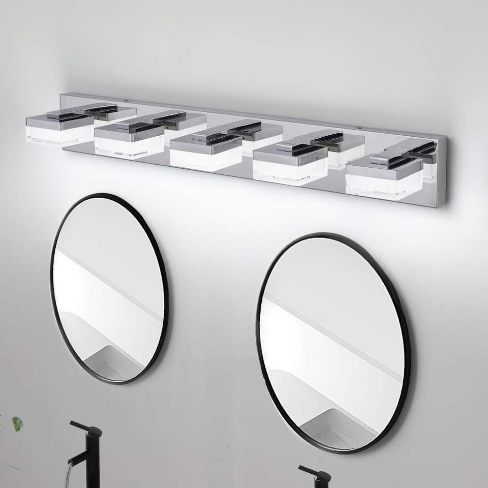 Lampada da Bagno Moderna a LED Cromata, Applique Minimalista a 5 Luci, Efficiente dal Punto di Vista Energetico e Facile da Installare