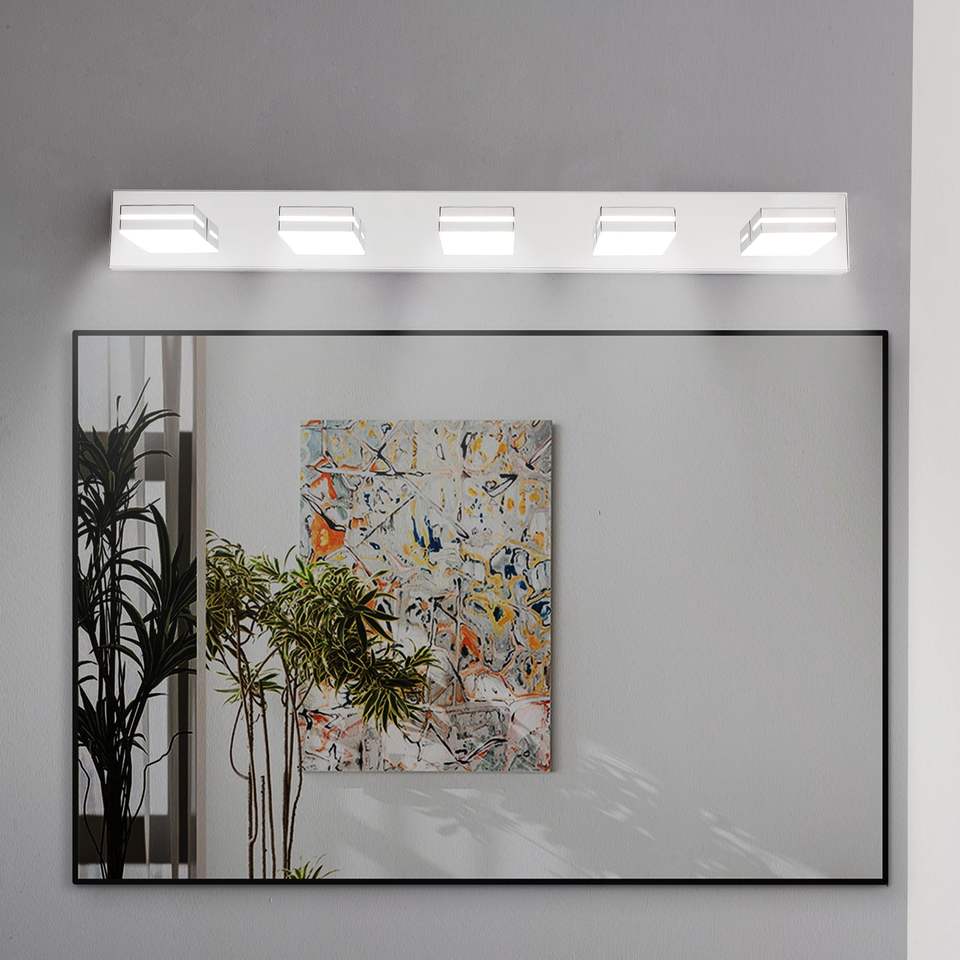 Lampada da Bagno Moderna a LED Cromata, Applique Minimalista a 5 Luci, Efficiente dal Punto di Vista Energetico e Facile da Installare