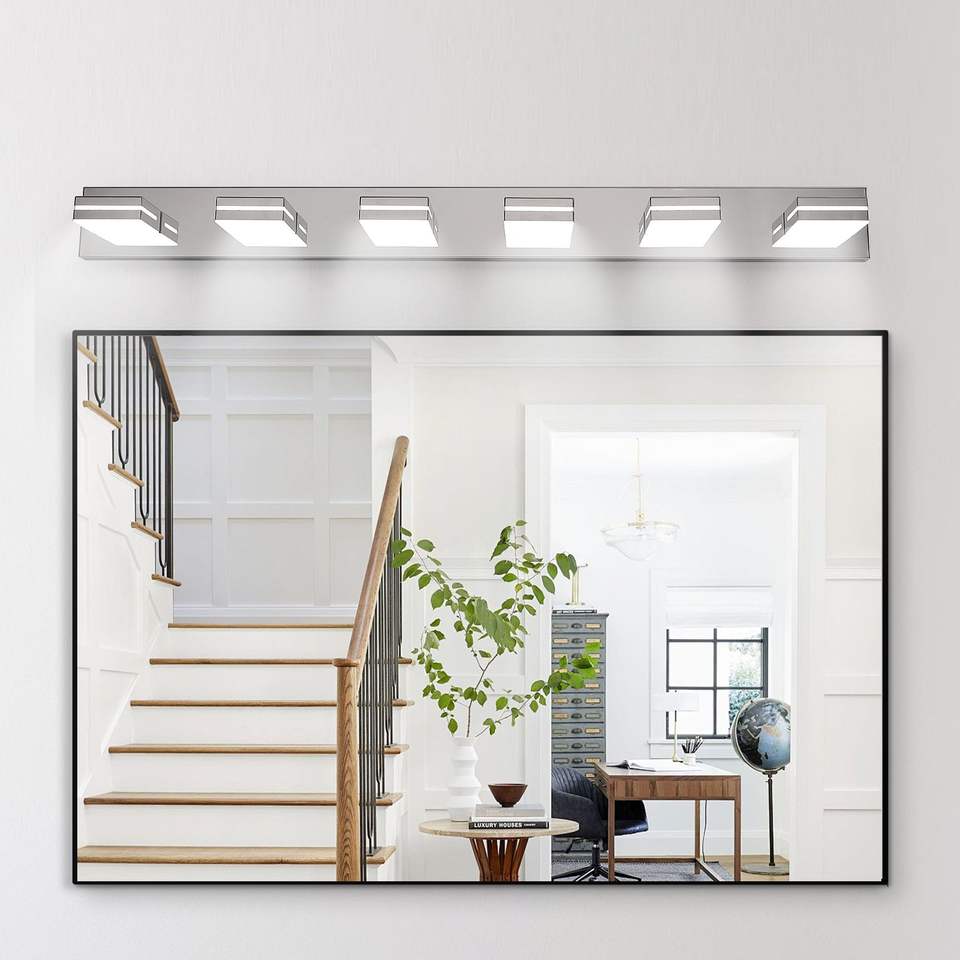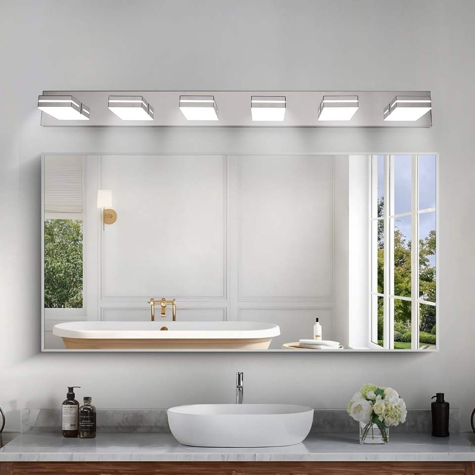Lampada da Bagno Moderna a LED Cromata, Applique Minimalista a 6 Luci, Efficiente dal Punto di Vista Energetico e Facile da Installare