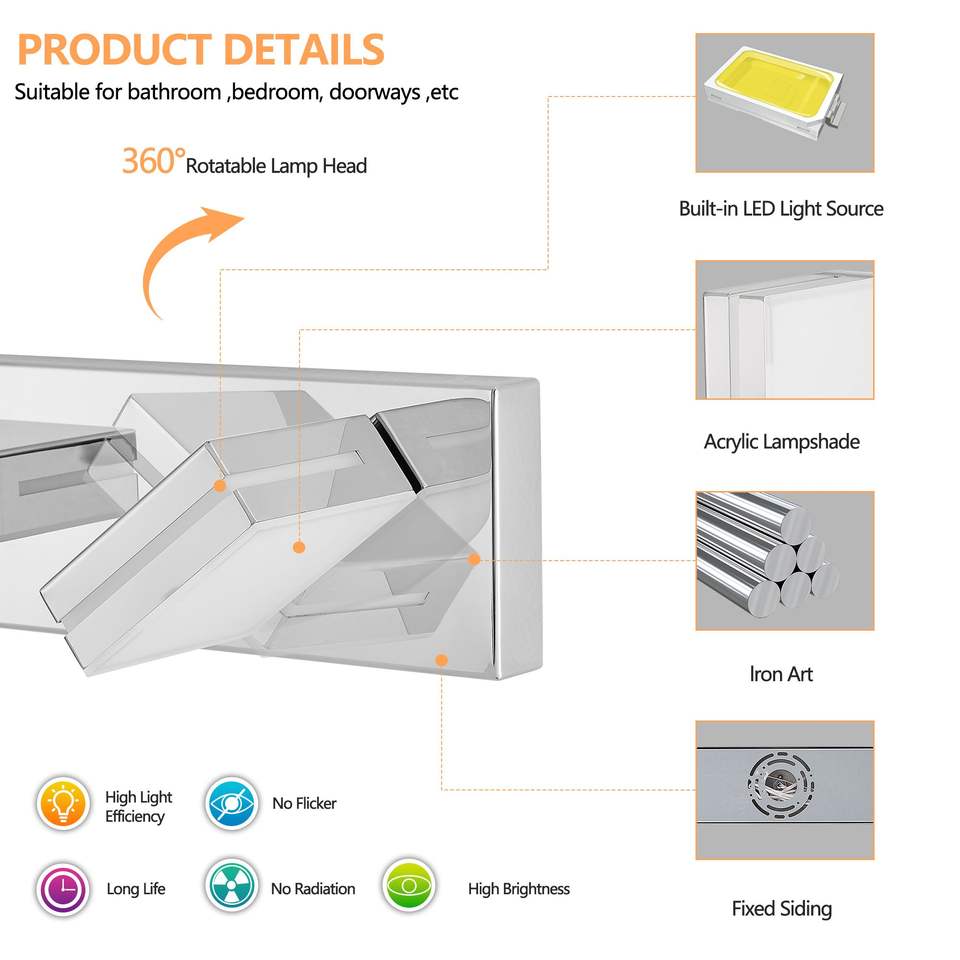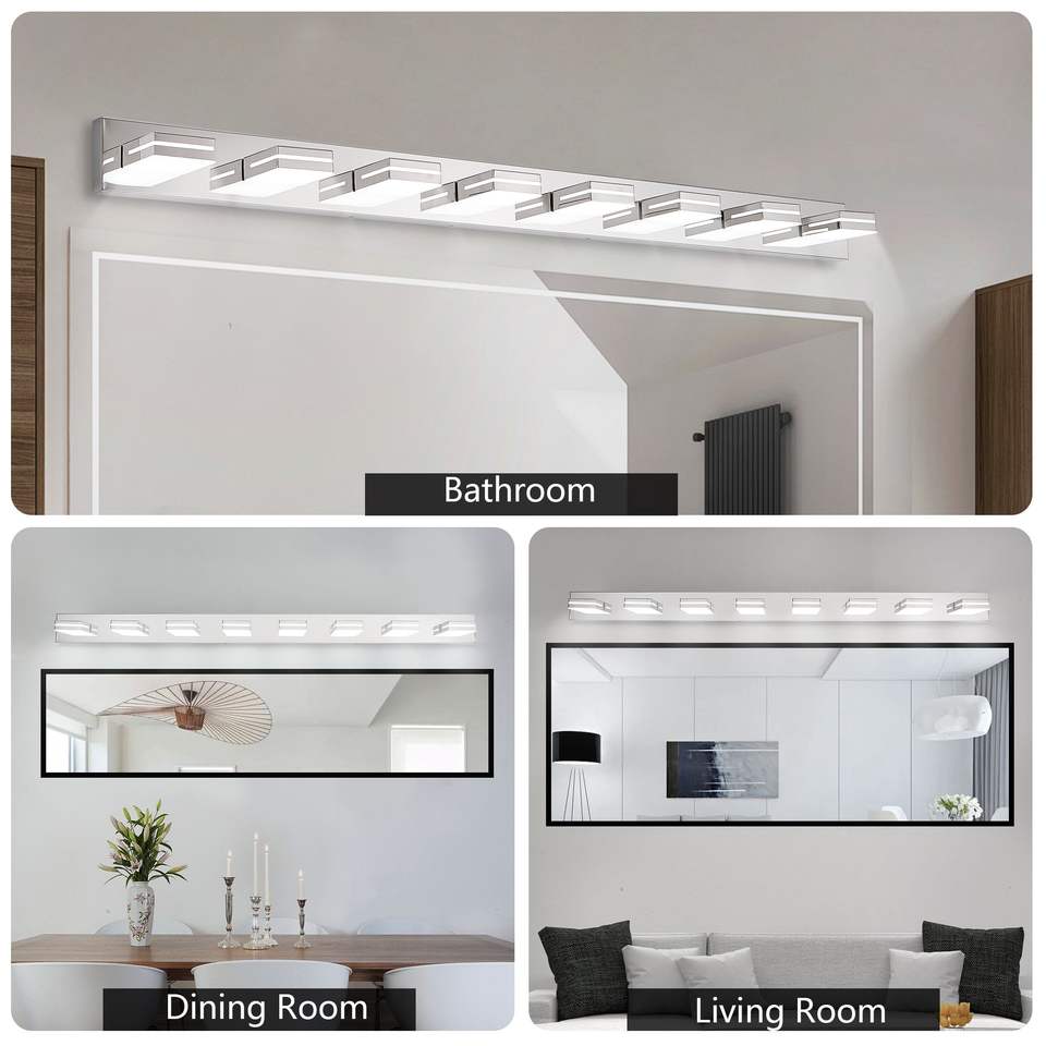 Lampada da Specchio LED Moderna Cromata, Minimalista ed Elegante, Applique a 8 Luci, Efficiente dal Punto di Vista Energetico, Facile da Installare, per Specchio da Bagno