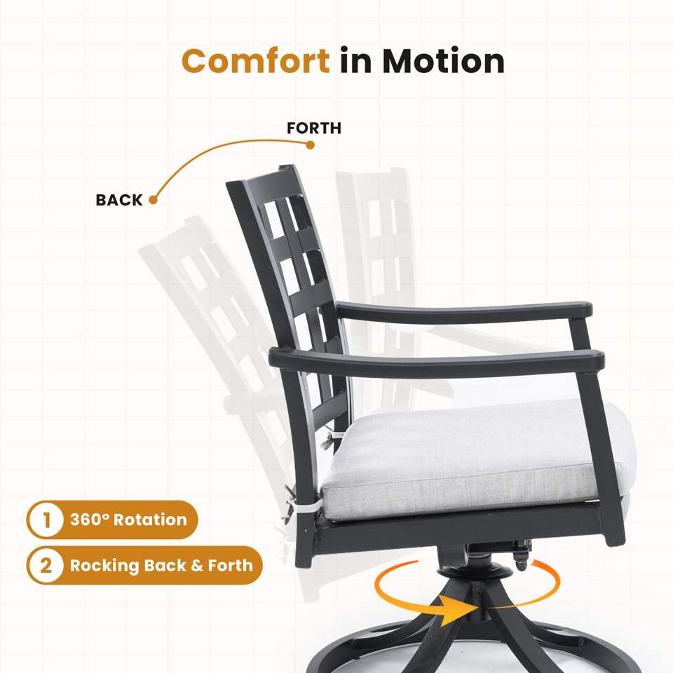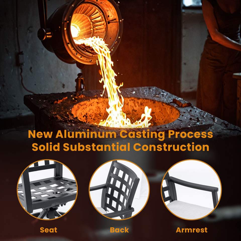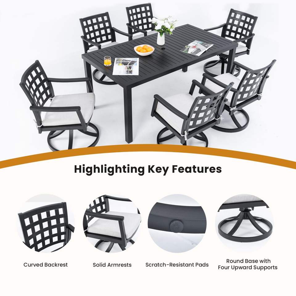 Modern Classic 7-Piece Outdoor Patio Dining Set Rectangular Cast Aluminum Table Six Rock Dining Chairs Garden Sets