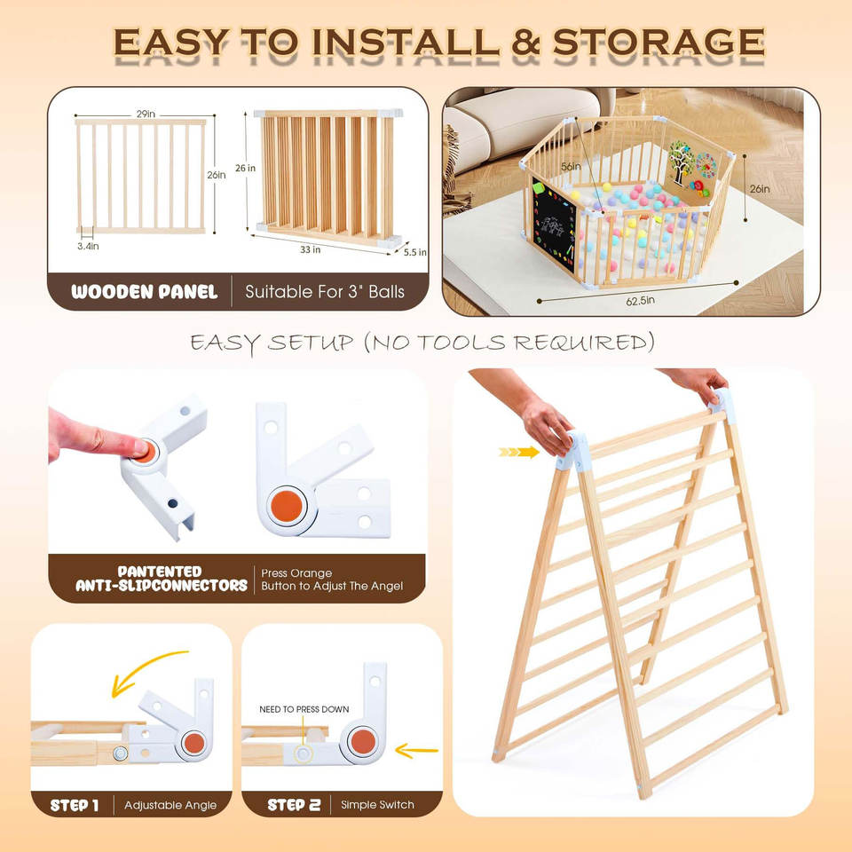 Box per Bambini in Legno Moderno e Classico, Pieghevole e Portatile, con Lavagna a Doppia Faccia