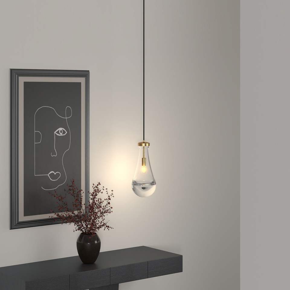 Lampadario Moderno a Goccia Trasparente con Asta in Ottone, Illuminazione per Isola Cucina e Sala da Pranzo, Eleganti Lampadari e Luci Pendenti