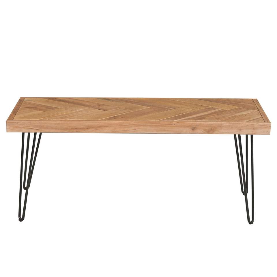Tavolino da Cocktail Moderno con Motivo a Chevron e Gambe a Forcina in Metallo, Facile Montaggio, Finitura Grezza Naturale - Per Casa o Ufficio