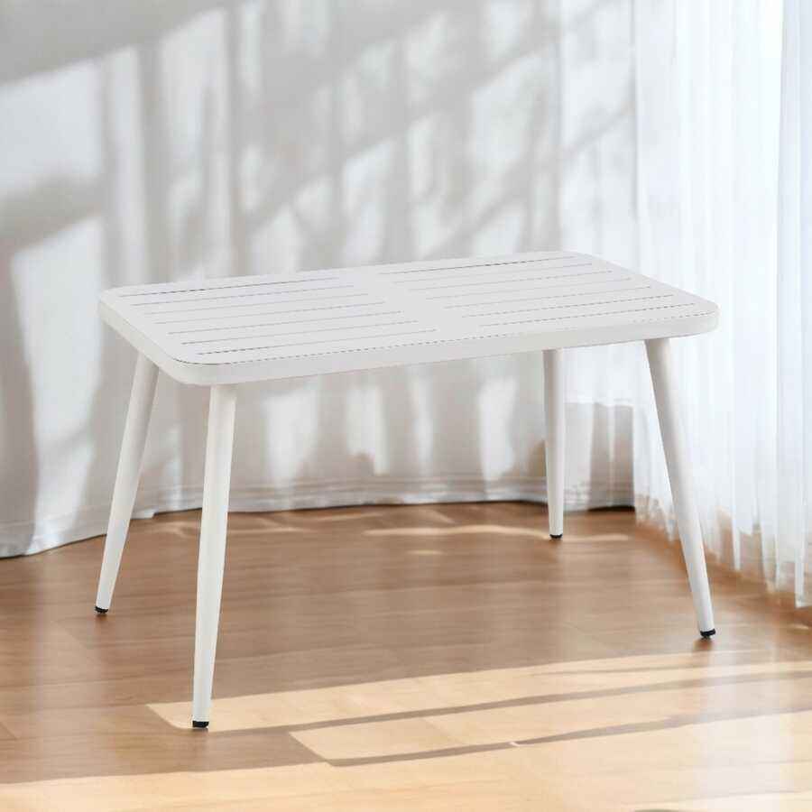 Tavolino da Caffè Moderno W120D70H74cm con Piano in Plastica Bianca e Struttura in Metallo, Design Minimalista per Arredamento Soggiorno