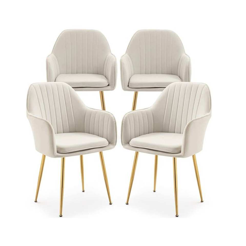 Modern Comfort Armchair with Gold Metal Leg Beige Velvet Side Chair for Home Living Room Dining Chair with Cushion