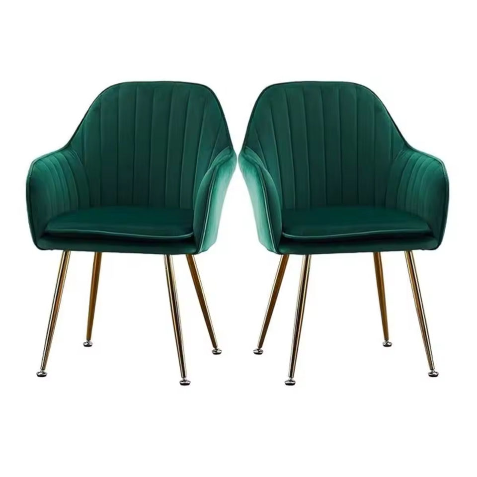 Modern Comfort Armchair with Gold Metal Leg Beige Velvet Side Chair for Home Living Room Dining Chair with Cushion