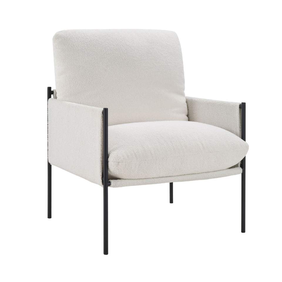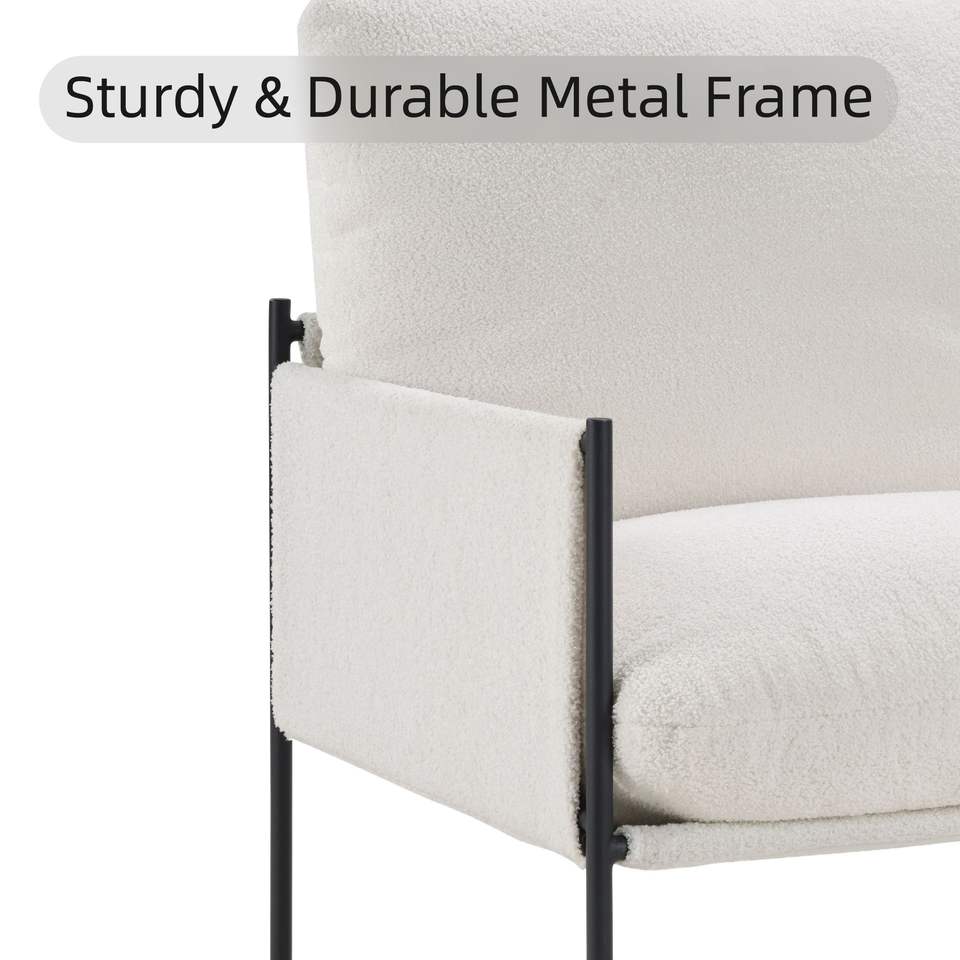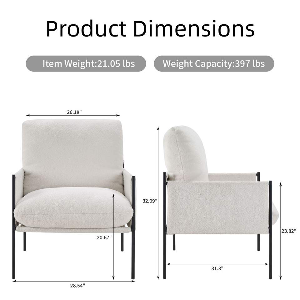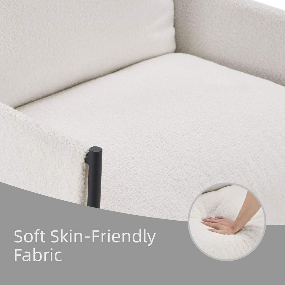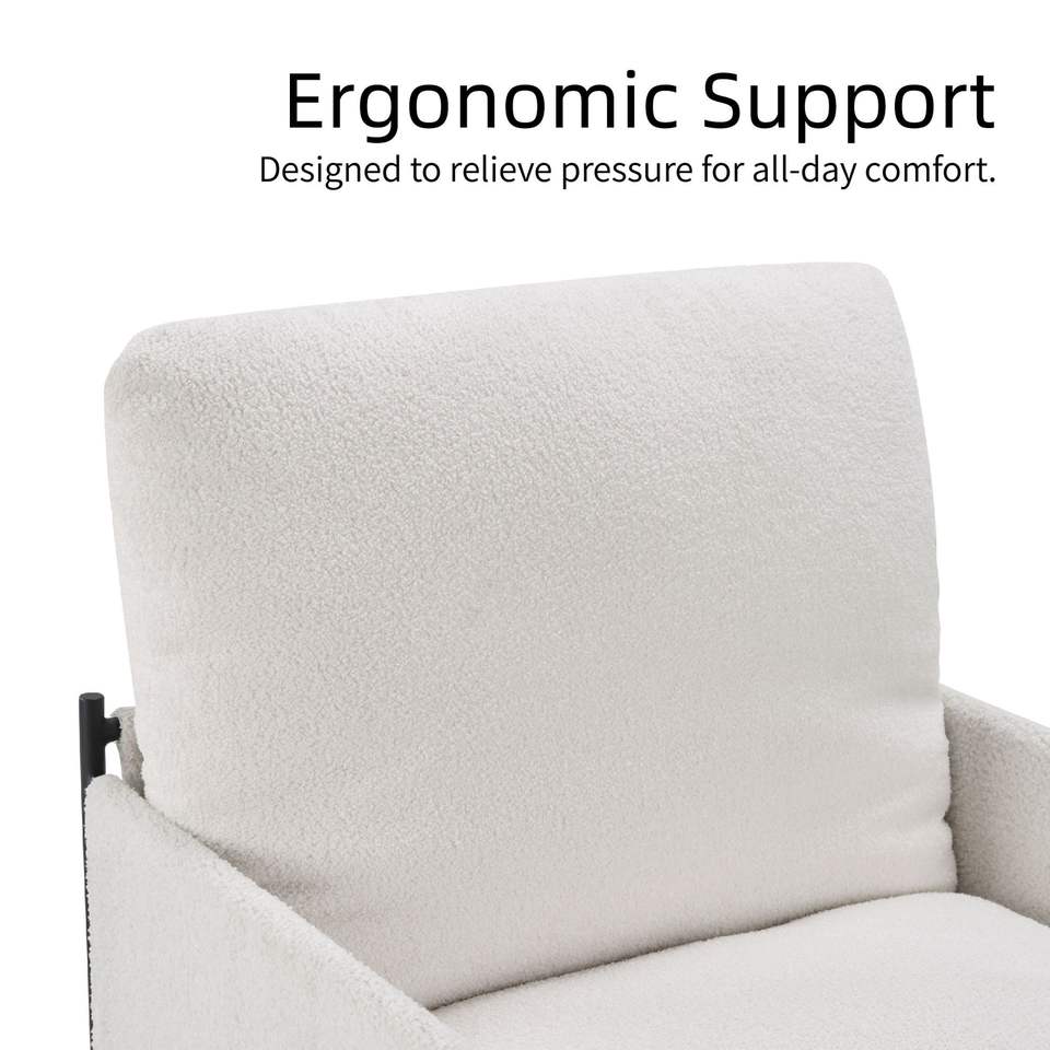Poltrona Moderna e Confortevole con Cuscino Rimovibile, Sedia per Soggiorno e Camera da Letto in Bianco con Braccioli in Legno