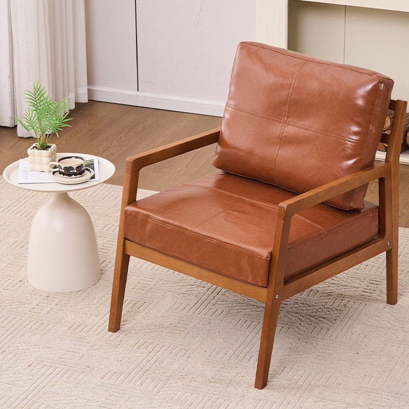 Poltrona Moderna in Pelle Confortevole con Imbottitura Morbida e Struttura in Legno Massello per Relax in Balconi di Hotel, Soggiorni e Camere da Letto
