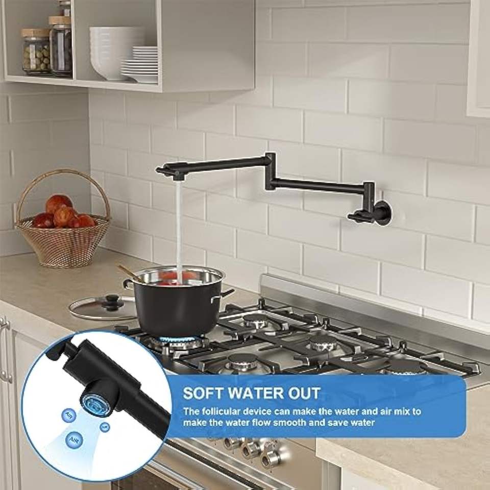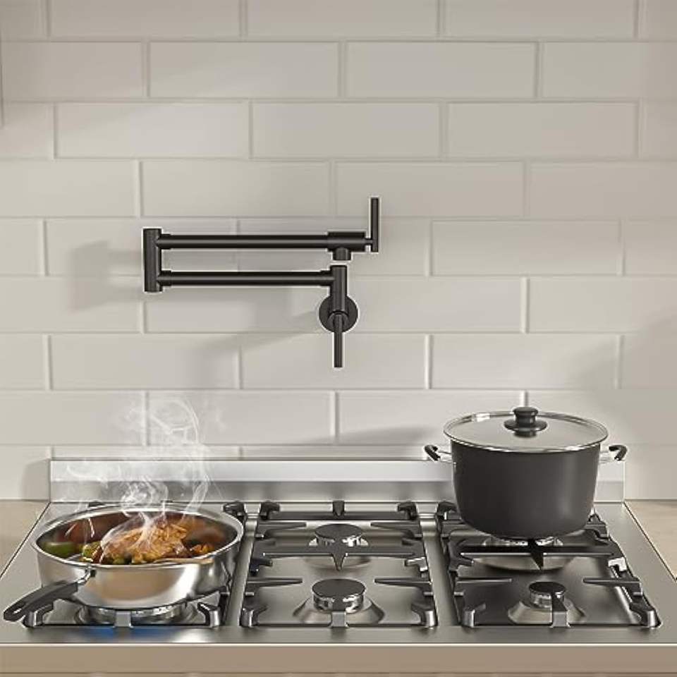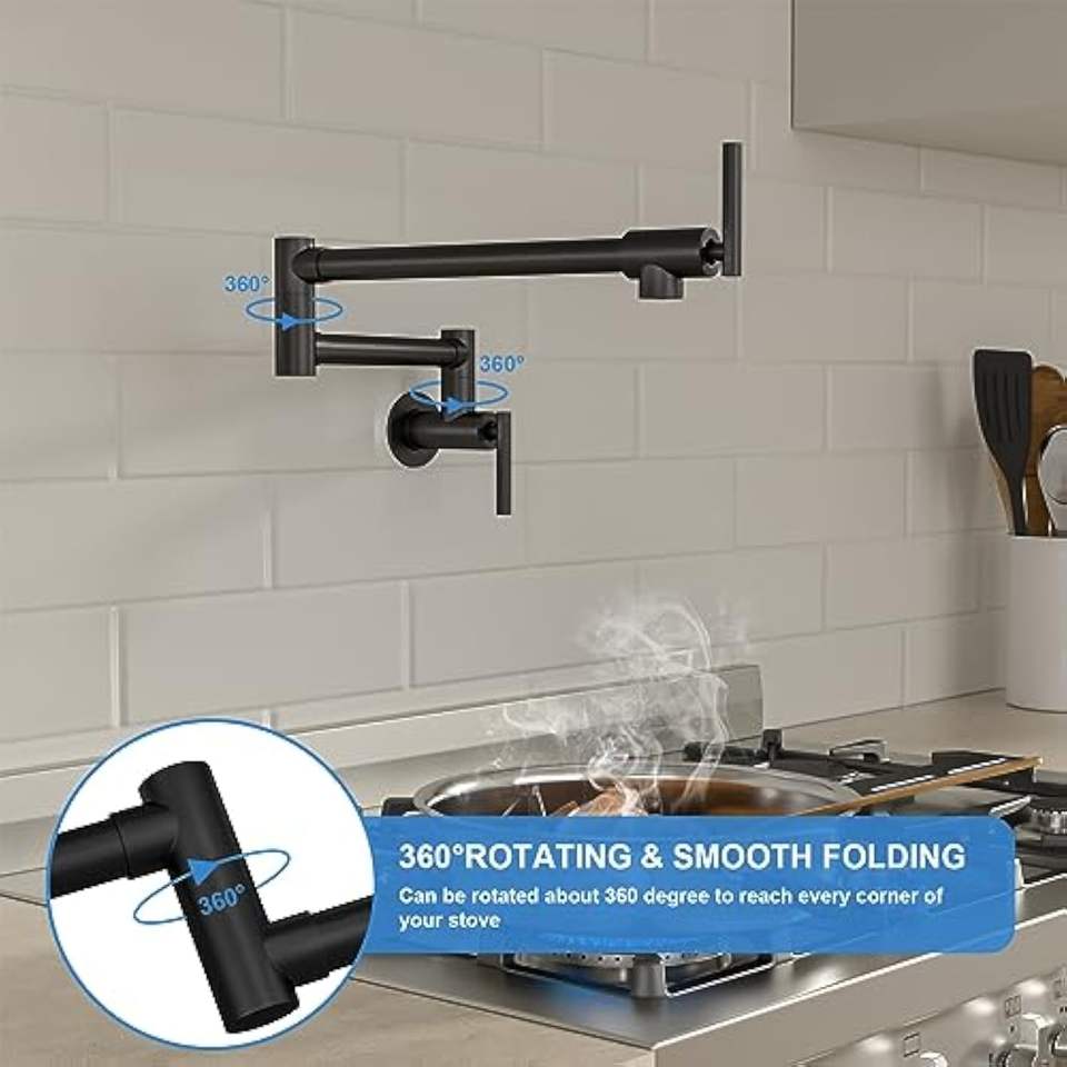 Modern Commercial Kitchen Faucet Black Stove Filler Faucet Double Joint Swing Arms Wall Mount Kitchens Pot Water Taps