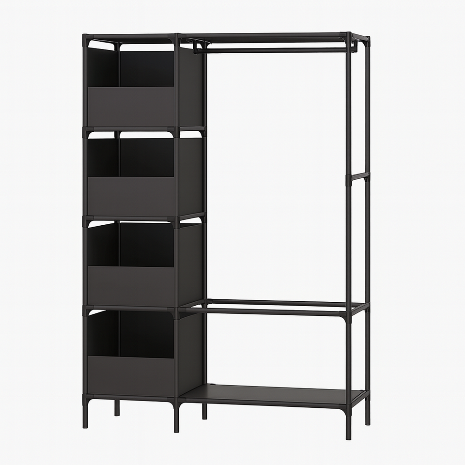 Armadio Modulare Moderno Compatto 105*45*170cm Nero con 5 Cubi Portaoggetti, Asta Appendiabiti e Ripiano Inferiore per Scarpe - Salvaspazio in PP per Soggiorno