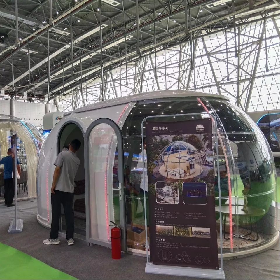 Moderna Casa Container a Cupola Ellittica in PC Trasparente per Feste all'Aperto, Sala VIP, Campeggio, Pod per Ristorazione a Bolla per Tutte le Stagioni