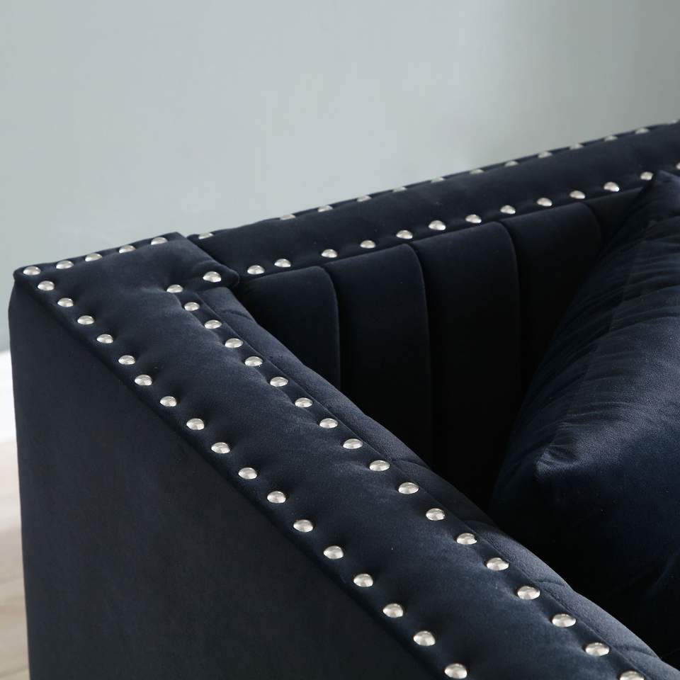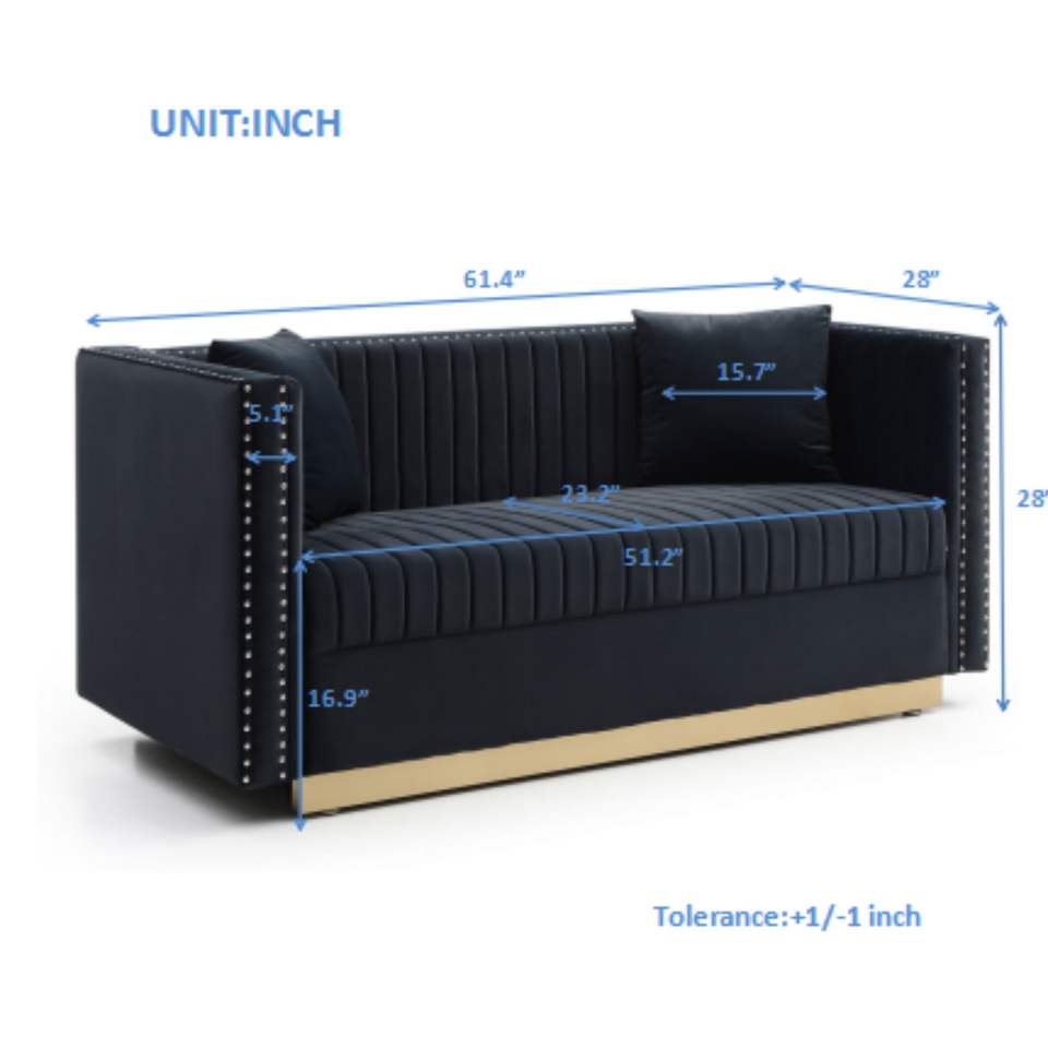 Divano Moderno Contemporaneo a 2 Posti in Velluto Trapuntato con Cuscini Verticali per Soggiorno e Appartamenti