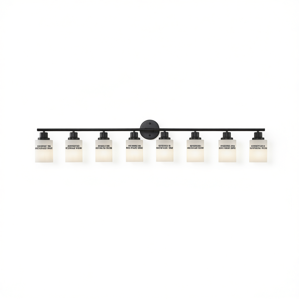 Applique da Parete Moderna Contemporanea a 8 Luci con Vetro Smerigliato Bianco e Struttura in Ferro Nero, Luce a LED Bianco Caldo per Specchio da Bagno