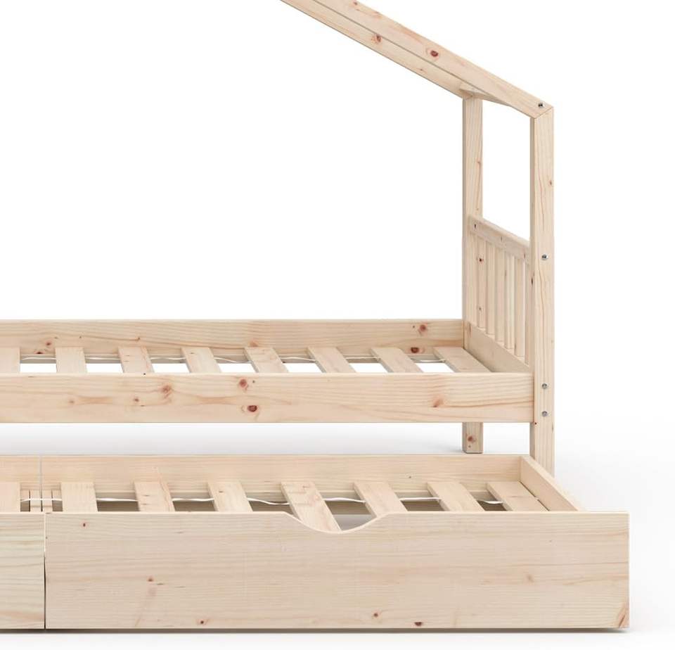 Modern Contemporary Solid Pine Wood Platform Cabin Bed 90x200 cm Natural Wood Double Bed Frame for Home Use with Extra Bed