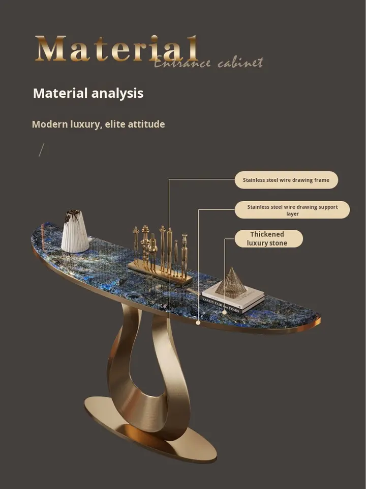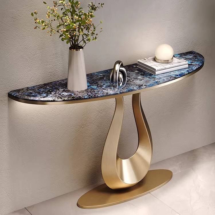 Consolle Moderna per Soggiorno con Struttura in Acciaio Inox Dorato e Piano in Marmo, Tavolo Decorativo per Ingresso con Spazio di Archiviazione