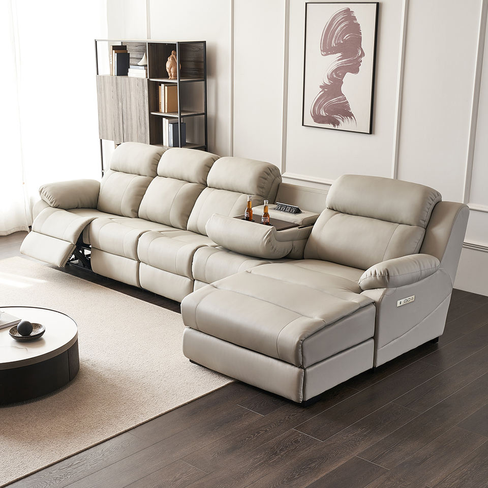 Divano Smart in Pelle di Vacchetta Moderno, Divano Angolare a L per Home Theater e Soggiorno, Divano Reclinabile in Pelle di Prima Qualità