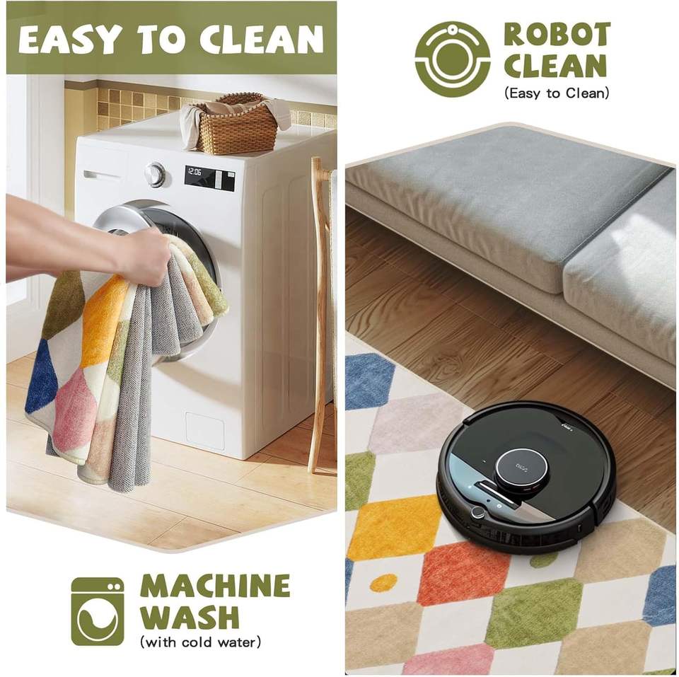 Modern Cream Diamond Area Rug 5x7 Kids Washable Indoor Floor Cover Non-Slip Soft Living Room Carpet for Nursery Dining Bedroom