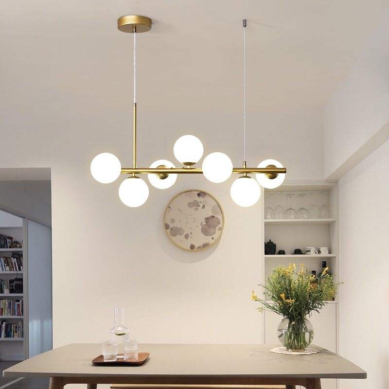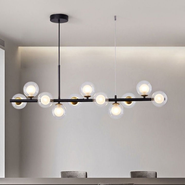Moderno creativo scandinavo minimalista Multi-testa lampadario negozio di abbigliamento lampada pendente in vetro sfera di ferro ciondolo Bar