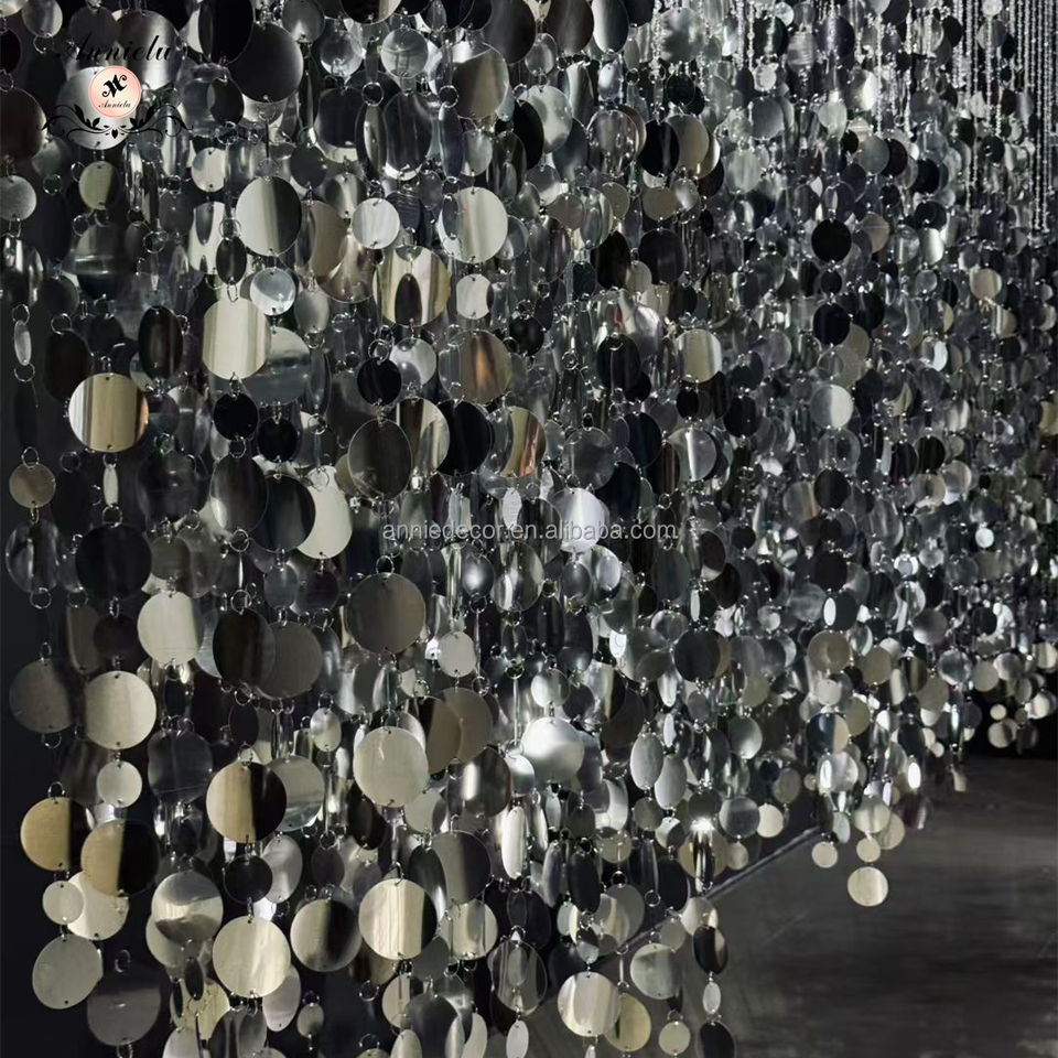 Moderna Tenda a Fili con Paillettes Argento e Oro Personalizzata Lunga Drappeggio Decorazione per Sfondo Eventi Matrimoni e Sale Ricevimento