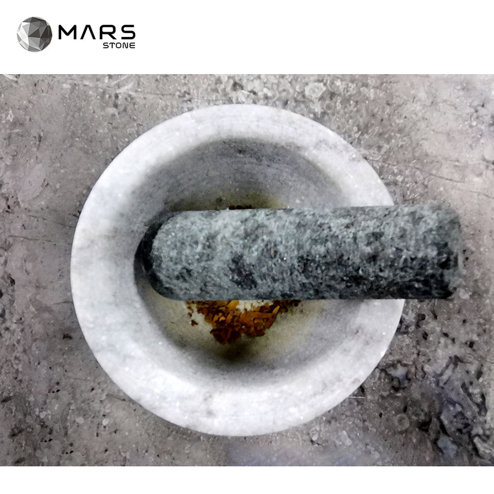 Modern Customized Black and White Color Natural Stone Marble Granite Mortar and Pestle Set Grinding Bowls for Kitchen