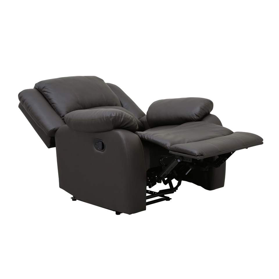 Poltrona Reclinabile Moderna in Ecopelle Marrone Scuro con Braccioli Imbottiti e Struttura in Legno Massello, Arredo Soggiorno