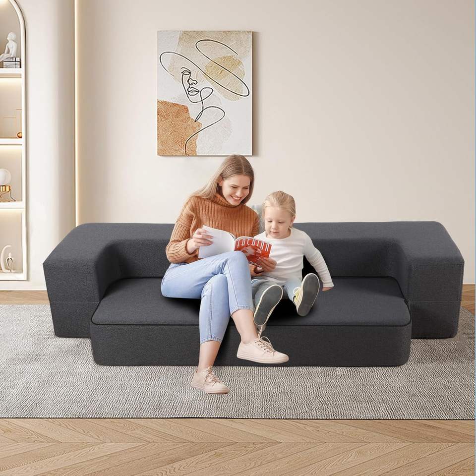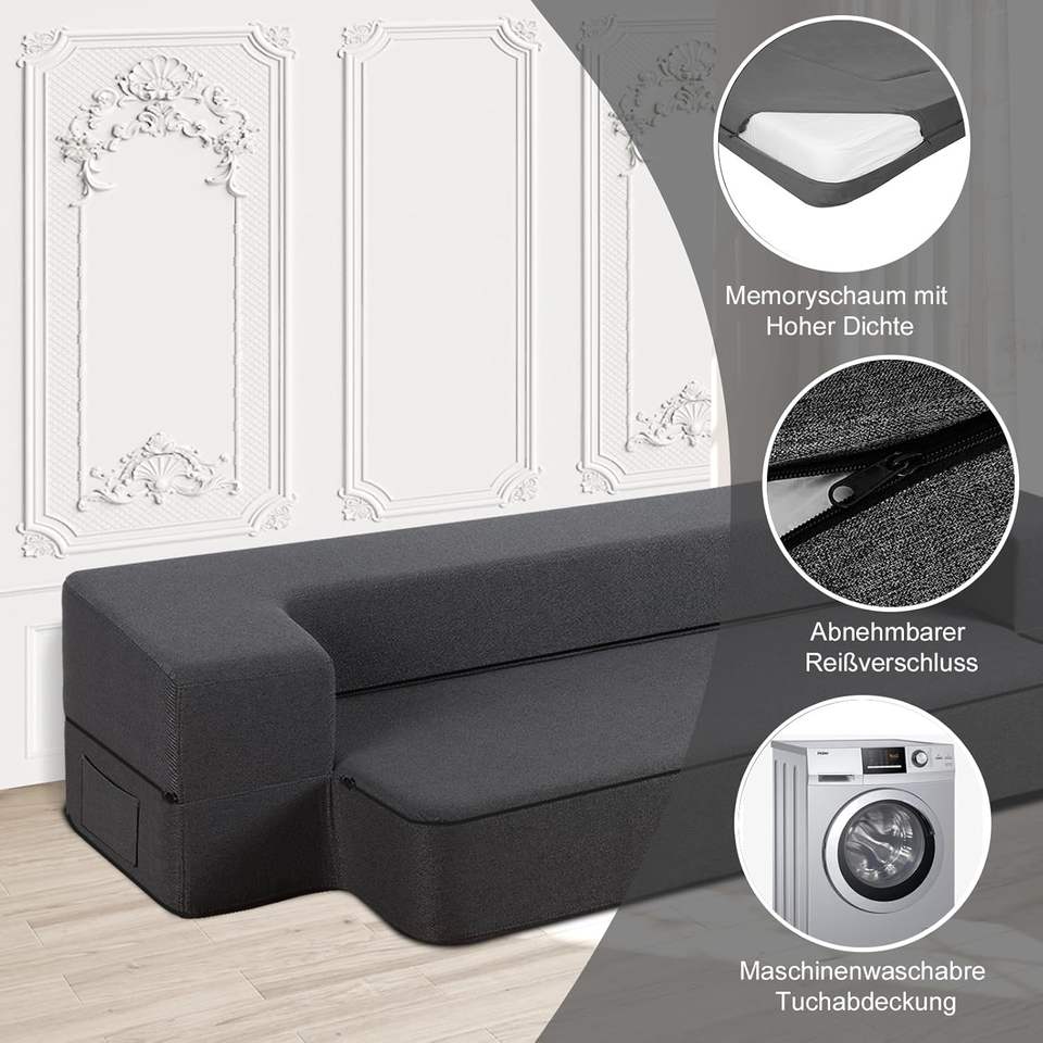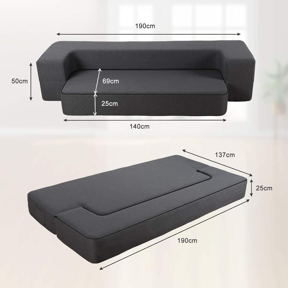 Modern Dark Grey Convertible Armchair Mattress Square Folding Sofa Bed Memory Foam Guest Couch Sleep Function for Living Room