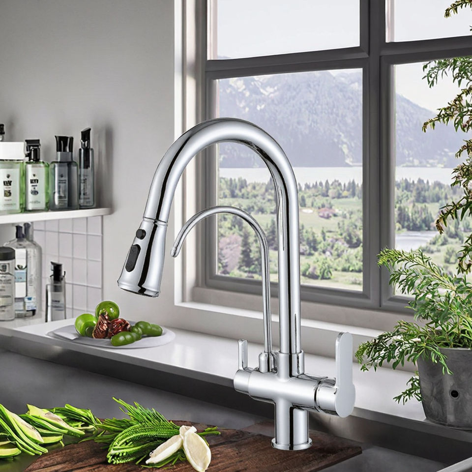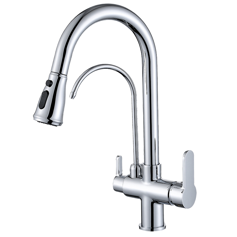 Modern Deck Mounted Kitchen Faucet 304 Brass Three-Way Ceramic Valve Core Pull Spray Single Handle Hot/Cold Purified Water Mixer